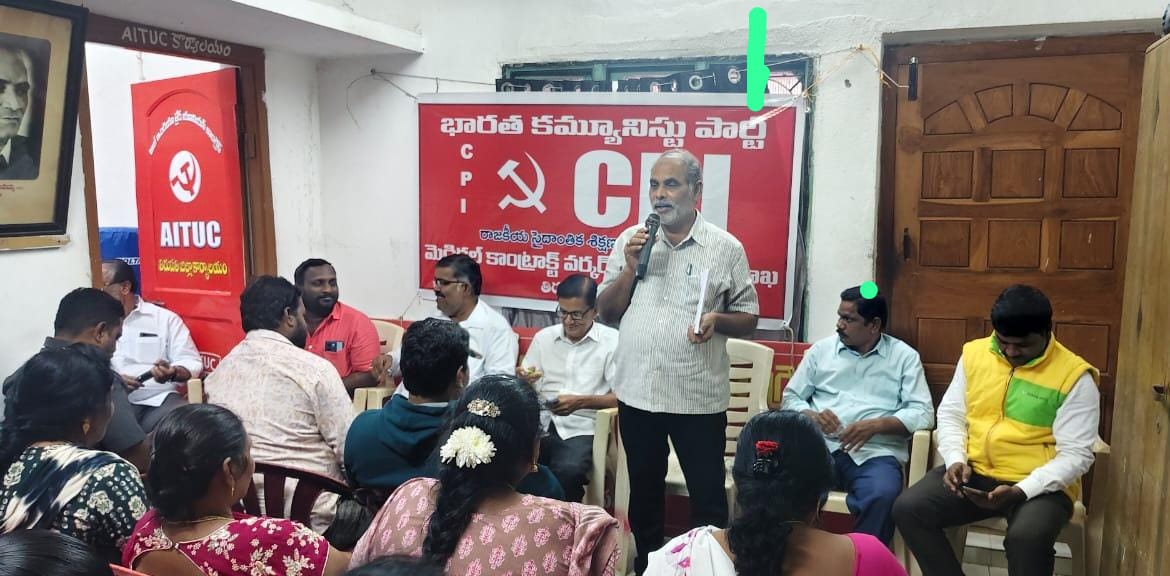 నేటి సాక్షి తిరుపతి (బాదూరు బాల)పోరాటాల ద్వారానే అన్నీ సమస్యలకు పరిష్కారం దొరుకుతుందని సిపిఐ రాష్ట్ర కార్యవర్గ సభ్యులు ఎ రామానాయుడు స్పష్టం చేశారు . మంగళవారం మెడికల్ కాంట్రాక్టు వర్కర్స్ యూనియన్ సిపిఐ పార్టీ సభ్యుల రాజకీయ సైద్ధాంతిక శిక్షణా తరగతులు పి. మహేంద్ర అధ్యక్షతన బైరాగి పట్టెడ లోని సిపిఐ కార్యాలయంలో జరిగింది. ఈ శిక్షణా తరగతులకు సిపిఐ రాష్ట్ర కార్యవర్గ సభ్యులు ఎ రామానాయుడు ముఖ్య అతిథిగా పాల్గొని మాట్లాడుతూ ఉద్యోగ, కార్మిక, కష్టజీవుల సమస్యల పరిష్కారానికి పోరాటాలు ఆవశ్యమని అన్నారు. కార్మికుల పనిగంటలు తగ్గింపు కోసం అనేక పోరాటాలు చేయడానికి కారల్ మార్క్స్ రచించిన కమ్యూనిస్టు ప్రణాళిక ఉపయోగ పడిందన్నారు 1925 డిసెంబర్ 26వ తేదీన కమ్యూనిస్టు పార్టీ కాన్పూర్ లో ఆవిర్భవించిందన్నారు. కమ్యూనిస్టు పార్టీ ప్రధాన ఎజెండా బ్రిటీష్ పాలకులు భారత దేశాన్ని వదిలి పోవాలని, దేశానికి సంపూర్ణ స్వాతంత్ర్యం కోసం నినాద మిచ్చి పోరాడిందన్నారు . దేశం లో అనేక రాజకీయ పార్టీలు పుట్టుకొస్తున్నాయి అధికారం లేకపోతే కనుమరుగవుతున్నాయి అన్నారు. ప్రాంతీయ పార్టీలు అన్నీ కేవలం అధికారం కోసం పుట్టినవే… ప్రజల కోసం నిరంతరం రాజీలేని పోరాటం చేస్తున్నది కమ్యూనిస్టు పార్టీ మాత్రమే అన్నారు.సిపిఐ జిల్లా కార్యదర్శి పి మురళి మాట్లాడుతూ కార్మిక హక్కుల కోసం, కాంట్రాక్టు , అవుట్ సోర్సింగ్ కార్మికులకు కనీస వేతనాలు కోసం కార్మిక సంఘాల ను ఐక్య పరచి పోరాడేది సిపిఐ అని స్పష్టం చేశారు. ఎస్వీ యూనివర్సిటీ విశ్రాంత ప్రొఫెసర్ కె వి రమణ మాట్లాడుతూ అసంఘటిత రంగ కార్మికులకు సంక్షేమ పథకాలు అమలు చేయడం ప్రభుత్వ బాధ్యత అని అన్నారు. ప్రతి పార్టీ సభ్యులు సైద్ధాంతికంగా రాజకీయంగా ఎదగాలని అందుకు అవసరమైన చైతన్యం కలిగి ఉండాలని, అలాంటి చైతన్యం కావాలంటే మార్క్సిజం ను అధ్యయనం చేయాలని సూచించారు. ఈ శిక్షణా తరగతులు ప్రారంభానికి ముందుగా ఆంధ్రప్రదేశ్ ప్రజానాట్యమండలి రాష్ట్ర ప్రధాన కార్యదర్శి చిన్నం పెంచలయ్య పార్టీ ఉద్యమ గీతాలను ఆలపించారు. ఈ శిక్షణా తరగతులు లో సిపిఐ జిల్లా కార్యవర్గ సభ్యులు కె రాధాకృష్ణ, జె విశ్వనాథ్, శాఖ కార్యదర్శిలు పి మహేంద్ర తదితరులు పాల్గొన్నారు.