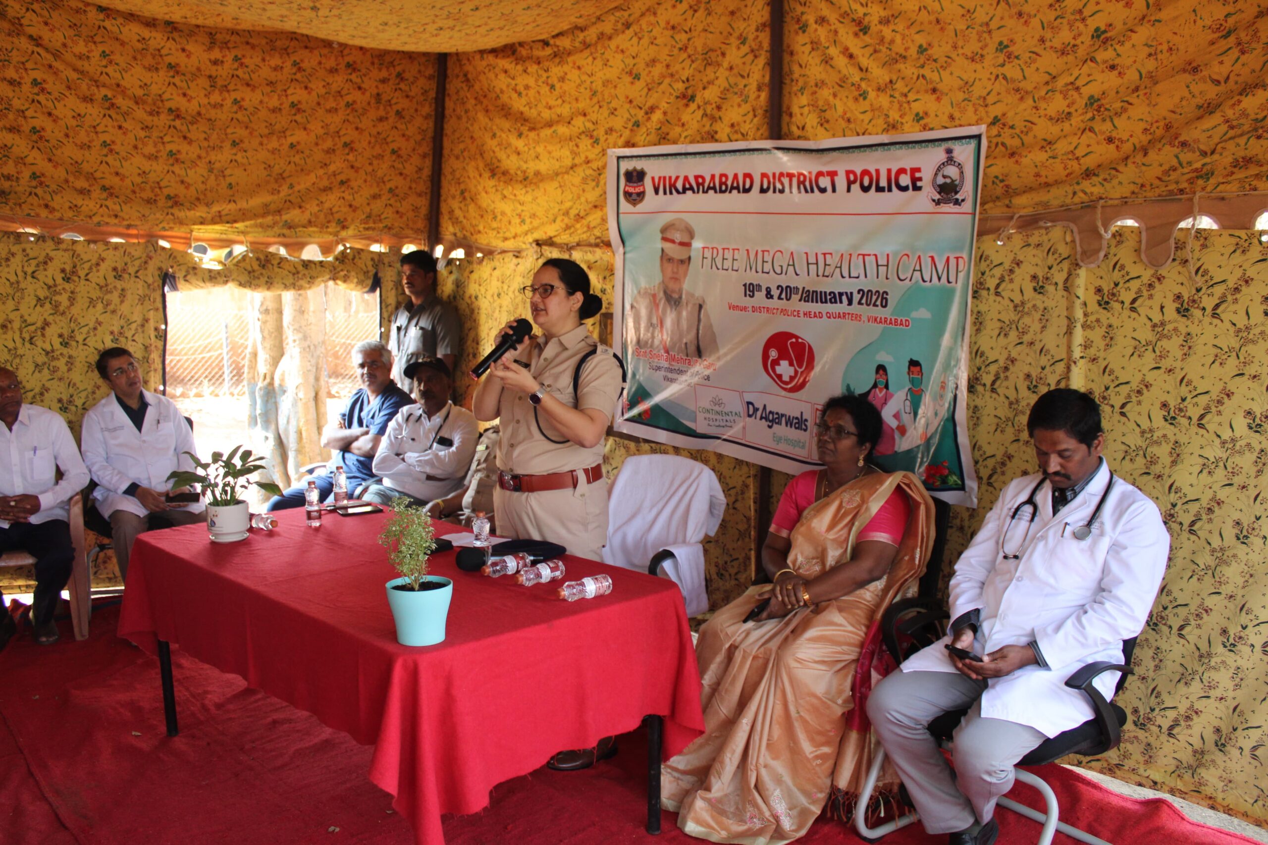 నేటి సాక్షి వికారాబాద్:వికారాబాద్ జిల్లా పోలీస్ యంత్రాంగం జిల్లా పోలీస్ అసోసియేషన్ సంయుక్త ఆధ్వర్యంలో సోమవారం జిల్లా పోలీస్ కార్యాలయ ఆవరణలో పోలీస్ అధికారులు, సిబ్బంది, హోం గార్డ్స్ అధికారుల వారి కుటుంబ సభ్యుల కోసం ఏర్పాటు చేసిన “మెగా ఉచిత ఆరోగ్య శిబిరాన్ని” జిల్లా ఎస్పీ శ్రీమతి స్నేహ మెహ్రా, ముఖ్య అతిథిగా విచ్చేసి ప్రారంభించారు. ఈ సందర్భంగా వికారాబాద్ సబ్ డివిజన్ పరిధిలోని పోలీస్ అధికారులు , జిల్లా ఏ ఆర్ విభాగం హోం గార్డులకు వారి కుటుంబ సభ్యులకు భారీ స్థాయిలో వైద్య పరీక్షలు నిర్వహించారు. విధి నిర్వహణలో నిరంతరం మానసిక, శారీరక ఒత్తిడికి గురయ్యే పోలీసుల ఆరోగ్యాన్ని పర్యవేక్షించడం, వారిలో ధైర్యాన్ని, దృఢత్వాన్ని నింపడమే ఈ మెగా శిబిరం యొక్క ముఖ్య ఉద్దేశ్యమని ఎస్పీ ఈ సందర్భంగా స్పష్టం చేశారు.శిబిరంలో భాగంగా నిపుణులైన వైద్య బృందం సిబ్బందికి ఈసిాజి, రక్తపోటు (బీపీ), షుగర్ లెవల్స్, బాడీ మాస్ ఇండెక్స్ (BMI) హృదయ స్పందన రేటు వంటి ప్రాథమిక పరీక్షలతో పాటు.. జనరల్ ఫిజీషియన్, గైనకాలజిస్ట్ (స్త్రీ రోగ నిపుణులు), ఆర్థోపెడిక్ (కీళ్ల వ్యాధి నిపుణులు), కార్డియాలజిస్ట్ (గుండె సంబంధిత నిపుణులు), డెంటల్ కంటి పరీక్షలను అత్యున్నత ప్రమాణాలతో నిర్వహించారు. కేవలం సిబ్బందికే కాకుండా, వారి కుటుంబ సభ్యులకు కూడా పరీక్షలు నిర్వహించి, అవసరమైన వారికి ఉచితంగా మందులను పంపిణీ చేయడమే కాక, తదుపరి చికిత్స కోసం తగిన సూచనలు చేశారు.ఈ సందర్భంగా ఏర్పాటు చేసిన సభలో జిల్లా ఎస్పీ గారు మాట్లాడుతూ, “ఆరోగ్యమే మహాభాగ్యం” అనే సూక్తి పోలీస్ వృత్తిలో ఉన్నవారికి ఎంతో కీలకమని పేర్కొన్నారు. సమాజ రక్షణలో అహర్నిశలు శ్రమించే పోలీసులు తమ ఆరోగ్యం పట్ల ఏమాత్రం అశ్రద్ధ వహించకూడదని, పోలీస్ సిబ్బంది శారీరకంగా, మానసికంగ దృఢంగా ఉన్నప్పుడే ప్రజలకు మరింత వేగవంతమైన, సమర్థవంతమైన సేవలు అందించడం సాధ్యమవుతుందని ఆమె తెలిపారు. మారుతున్న జీవనశైలి, పెరుగుతున్న పని ఒత్తిడి నేపథ్యంలో ప్రతి ఒక్కరూ క్రమం తప్పకుండా వ్యాయామం చేయడం, పౌష్టికాహారం తీసుకోవడం తగినంత విశ్రాంతికి సమయం కేటాయించాలని తెలిపినారు. కేవలం జబ్బు పడినప్పుడు మాత్రమే కాకుండా, ఇలాంటి ముందస్తు వైద్య పరీక్షల ద్వారా భవిష్యత్తులో రాబోయే తీవ్ర అనారోగ్య సమస్యలను ఆదిలోనే అరికట్టవచ్చని ఆమె సిబ్బందికి దిశానిర్దేశం చేశారు.ఈ కార్యక్రమంలో జిల్లా అదనపు ఎస్పీ బి.రాములు నాయక్ గారు, జిల్లా వైద్య ఆరోగ్య శాఖాధికారి స్వర్ణ కుమారి , డిఆర్సిబి డీఎస్పీ జానయ్య, డిటిసి డిఎస్పి శ్రీనివాసులు, వికారాబాద్ డిఎస్పి శ్రీనివాస్ రెడ్డి, ఏఆర్ డిఎస్పి వీరేష్, ఏఓ ఖజామోహినోద్దీన్ పాల్గొన్నారు. అలాగే ప్రముఖ వైద్యులు సత్యనారాయణ, రాజశేఖర్ ర