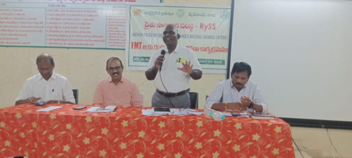 నేటి సాక్షి తిరుపతి (బాదూరు బాల)* *తిరుపతి రూరల్* తిరుపతిలోని డిఆర్డిఏ మీటింగ్ హాల్లో ప్రకృతి వ్యవసాయం పైన రైతు మాస్టర్ ట్రైనర్స్ కు రెండు రోజులపాటు శిక్షణ కార్యక్రమం నిర్వహించడం జరిగింది. ఈ శిక్షణ కార్యక్రమంలో భాగంగా ప్రకృతి వ్యవసాయాన్ని మరియు మోడల్స్ ను ఎక్కువ మంది రైతులతో ఎక్కువ గ్రామాలలో విస్తరింప చేయడం కోసం రైతు మాస్టర్ ట్రైనర్స్ ఎంపిక చేసిన వారికి ఆరు నుంచి పదిమంది ఐ సి ఆర్ పి లు ను మ్యాప్ చేసి క్యాడర్ యొక్క సొంత పొలాల్లో మోడల్స్ వేస్తూ మ్యాప్ చేసినటువంటి ఐ సి ఆర్ పి లు కు ట్రైనింగ్ ఇస్తూ వారి Iపొలాల్లో కూడా మోడల్స్ వేయించి ట్రైనింగ్ ఇవ్వడం జరుగుతుంది. ట్రైనింగ్ ఐన అందరూ కూడా లీడ్ ఫార్మర్స్ ను ఎంపిక చేసుకొని వారితో కూడా మోడల్స్ వేయించడం వల్ల ఎక్కువ మోడల్స్ రైతులు వెయ్యడం జరుగుతుంది. ఈ మోడల్స్ వల్ల తక్కువ పెట్టుబడితో రైతుకు నిరంతరా ఆదాయం రావడం ప్రకృతి వ్యవసాయ మోడల్ యొక్క ముఖ్య ఉద్దేశం అని డిపిఎం ఏ. షణ్ముగం వివరించారు.ఈ శిక్షణ కార్యక్రమంలో డి ఆర్ డి ఏ పిడి శోభన్ బాబు మాట్లాడుతూ ప్రకృతి వ్యవసాయానికి కావలసినటువంటి ఆర్థిక సహాయాన్ని సెర్ప్ ద్వారా లోన్ రూపంలో అందిస్తున్నామని తెలియజేశారు. మహిళలు ప్రకృతి వ్యవసాయ పద్ధతిలో మునగా సాగు చేసినట్లయితే హార్టికల్చర్ తరఫున సబ్సిడీ అమౌంట్ ఇస్తూ మార్కెటింగ్ కు మంచి డిమాండ్ ఉండడం వల్ల రైతుకు ఎక్కువ ఆదాయం వస్తుందని వివరించారు. ప్రతి మహిళా కూడా వారి ఇంటి దగ్గర కిచెన్ గార్డెన్స్ వేసుకోవడం వల్ల ప్రకృతి వ్యవసాయ పద్ధతిలో పండినటువంటి ఆహార ఉత్పత్తులు తినడం వల్ల ఆరోగ్యంగా ఉంటారని తెలియజేశారు. చిరుధాన్యాలు మరియు చిరుధాన్య ఉత్పత్తులను ప్రాసెస్ చేసి స్నాక్స్ ఉత్పత్తులను తయారు చేసి మార్కెటింగ్ చేసుకునేటువంటి అగ్రికేటర్స్ కాల్స్ పెట్టుకునే అవకాశం కల్పించడం, ప్రాసెసింగ్ యూనిట్స్ తీసుకునే వారికి కూడా 30% సబ్సిడీ అందించడం జరుగుతుందని వివరించారు. ఈ కార్యక్రమంలో డిపిఎం ఎ.షణ్ముగం, డ్రామా పిడి శోభన్ బాబు , ఆడిషన్ డిపిఎం పట్టాభి రెడ్డి , డీ ఏ రవి చంద్ర ప్రసాద్ , ప్రకృతి వ్యవసాయ సిబ్బంది హాజరైయ్యారు