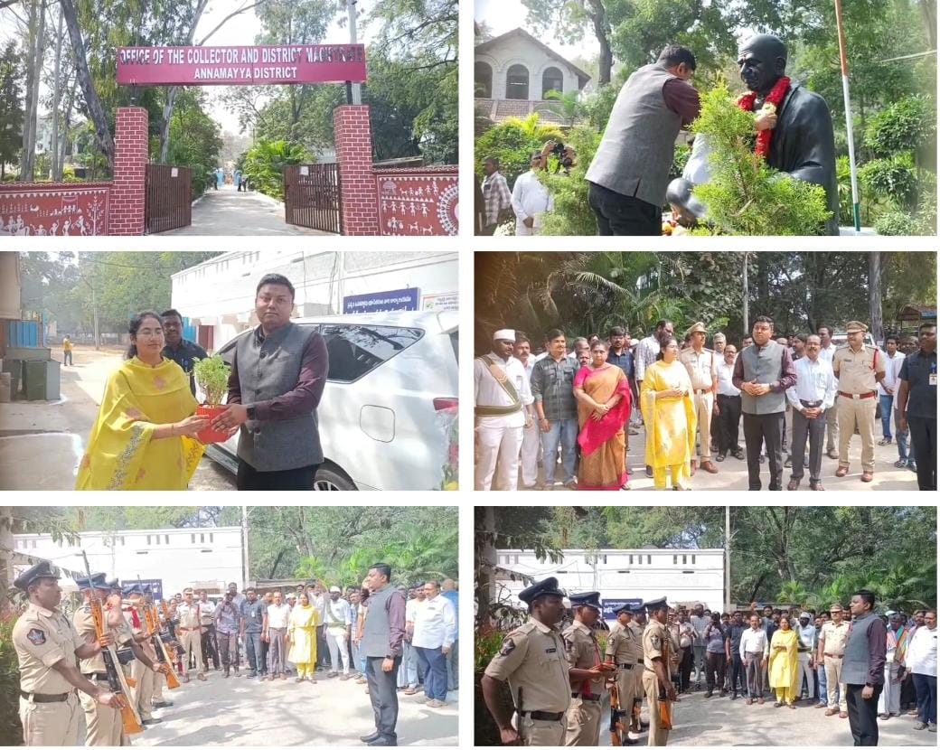 నేటి సాక్షి, అన్నమయ్య మదనపల్లి జిల్లా, శర్మ ÷మదనపల్లి జిల్లా -:- ప్రజల ఆకాంక్ష మేరకు మదనపల్లి జిల్లా కేంద్రంగా అవతరించిందని నూతన అన్నమయ్య జిల్లా మదనపల్లి అన్ని విధాలుగా అభివృద్ధిలో ముందుకు సాగాలని జిల్లా కలెక్టర్ నిశాంత్ కుమార్ ఆకాంక్షించారు. గురువారం శుభ ముహూర్తంలో వేద పండితుల వివిధ పూజ కార్యక్రమాల నడుమ మదనపల్లి జిల్లా కేంద్రంగా పాలన ప్రారంభమైంది. ఈ సందర్భంగా నిశాంత్ కుమార్ హర్షం వ్యక్తం చేస్తూ ప్రజల ఆకాంక్షల మేరకే నూతన అన్నమయ్య జిల్లాగా మదనపల్లి పాలన కేంద్రంగా సాగుతుందని ఈ నూతన జిల్లా అన్ని విధాలుగా అభివృద్ధి చెందాలని రాబోయే రోజుల్లో అభివృద్ధి చెందుతుందని జిల్లా కలెక్టర్ నిశాంత్ కుమార్ పేర్కొన్నారు. బుధవారం ఉదయం నూతన అన్నమయ్య జిల్లా కలెక్టరేట్ కార్యాలయాన్ని జిల్లా కలెక్టర్ నిశాంత్ కుమార్, సబ్ కలెక్టర్ చల్లా కళ్యాణి చేతుల మీదగా అధికారికంగా రిబ్బన్ కట్ చేసి పూజా కార్యక్రమాల నడుమ ప్రారంభించారు. ముందుగా జిల్లా కలెక్టర్ పోలీస్ గౌరవ వందనాన్ని స్వీకరించారు. నూతన కలెక్టరేట్ ఆరంభానికి ముందు కలెక్టరేట్ ఆవరణలో గల స్వాతంత్ర్య సమరయోధులు జాతిపిత మహాత్మా గాంధీ విగ్రహానికి పూలమాలవేసి నివాళులర్పించారు. ఈ సందర్భంగా మదనపల్లి సబ్ కలెక్టర్ చల్లా కళ్యాణి జిల్లా కలెక్టర్ నిశాంత్ కుమార్ కు సాదర స్వాగతం పలికారు. అనంతరం నూతన జిల్లా కలెక్టరేట్ ను జిల్లా కలెక్టర్ పరిశీలించి అధికారులకు మరియు సిబ్బందికి తగు సూచనలు చేశారు..~~~~~~~~~~~~~~~~~
