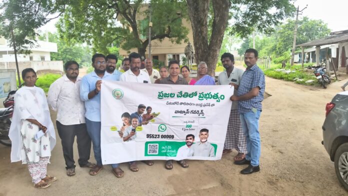 ఆంధ్రప్రదేశ్ రాష్ట్ర ప్రభుత్వం నూతనంగా ప్రజల సమస్యపై ప్రజల కొరకు అందుబాటులో ఉండే విధంగా ప్రజలకు సేవ అందించాలనే సంకల్పంతో రాష్ట్ర ప్రభుత్వం నూతనంగా ఒక కార్యక్రమానికి ఈ కార్యక్రమం పేరు ప్రజల చేతిలో ప్రభుత్వం కార్యక్రమం . ఇందులో భాగంగా కర్లపాలెం మండలం చింతాయపాలెం లో ప్రజల చేతిలో ప్రభుత్వం కార్యక్రమంను ఎంపీడీఓ అద్దురి శ్రీనివాసరావు ఆధ్వర్యంలో నిర్వహించారు.ప్రభుత్వ వాట్స్ ఆఫ్ గ్రూపుల పై అవగాహన కల్పిస్తూ గ్రామంలో ర్యాలీ నిర్వహించారు.ఈ సందర్భంగా ఆయన మాట్లాడుతూ ఒక్క నెంబర్ తో 200 కి పైగా సేవలు అందుబాటులో తీసుకొచ్చింది.వాట్సప్ లో 95523 00009 చాట్ చేయండి లేదా యువర్ కోడ్ స్కాన్ చేయండి సమస్యలను పరిష్కరించుకోవాలని ఎంపీడీవో అద్దూరి శ్రీనివాసరావు అన్నారు. ఈ కార్యక్రమంలో గ్రామ సర్పంచ్ పీఠా శ్రీనివాసరావు, కార్యదర్శి రాయుడు ,పంచాయతీ సిబ్బంది పాల్గొన్నారు.