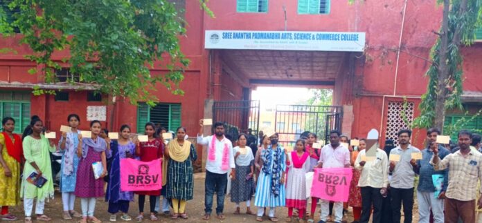 నేటి సాక్షి వికారాబాద్ :హైకోర్టు ప్రధాన న్యాయమూర్తి BRSV రాష్ట్ర కార్యదర్శి జంగయ్య ఆధ్వర్యంలో వికారాబాద్ లో పోస్టు కార్డు ఉద్యమంజంగయ్య మాట్లాడుతూ.వికారాబాద్ లోని అనంత పద్మనాభ కళాశాల డైట్ కళాశాల వివిధ డిగ్రీ కళాశాలలో విద్యార్థులను కలిసి, పెండింగ్ లో ఉన్న ఫీ రీయంబర్స్మెంట్ విడుదల చేసే విధంగా రాష్ట్ర ప్రభుత్వానికి ఉత్తర్వులు ఇవ్వాల్సిందిగా తెలంగాణ హై కోర్ట్ ప్రధాన న్యాయమూర్తి గారికి పోస్ట్ కార్డ్ ల ద్వారా విజ్ఞప్తి కార్యక్రమం నిర్వహించడమైమది. విద్యార్థులు పెద్ద ఎత్తున పాల్గొని తమ స్వహస్త్రాలతో ఉత్తరాలు వ్రాసిస్తూ BRSV చేస్తున్న పోరాటానికి మద్దతు పలికారు.ఈ కార్యక్రమంలో బిఆర్ఎస్వి నాయకులు జుబేర్ సురేష్ బిక్షపతి అక్రమ్ తదితరులు పాల్గొన్నారు