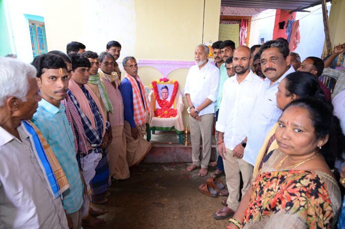 నేటి సాక్షి తిరుపతి (బాదూరు బాల)పాకాల,పాకాల మండలం మద్దినాయనపల్లి పంచాయతీ, కొత్తవడ్డేపల్లి గ్రామానికి చెందిన టిడిపి నాయకుడు బండి భాస్కర్ తండ్రి బండి లక్ష్మయ్య కర్మ క్రియలకు హాజరైన ఎమ్మెల్యే పులివర్తి నాని స్థానిక కూటమి ప్రభుత్వం నాయకులు కార్యకర్తలతో కలిసి బండి లక్ష్మయ్య చిత్రపటానికి పుష్పాంజలి ఘటించి నివాళులర్పించారు. ఈ కార్యక్రమంలో కూటమి ప్రభుత్వం నాయకులు కార్యకర్తలు పాల్గొన్నారు