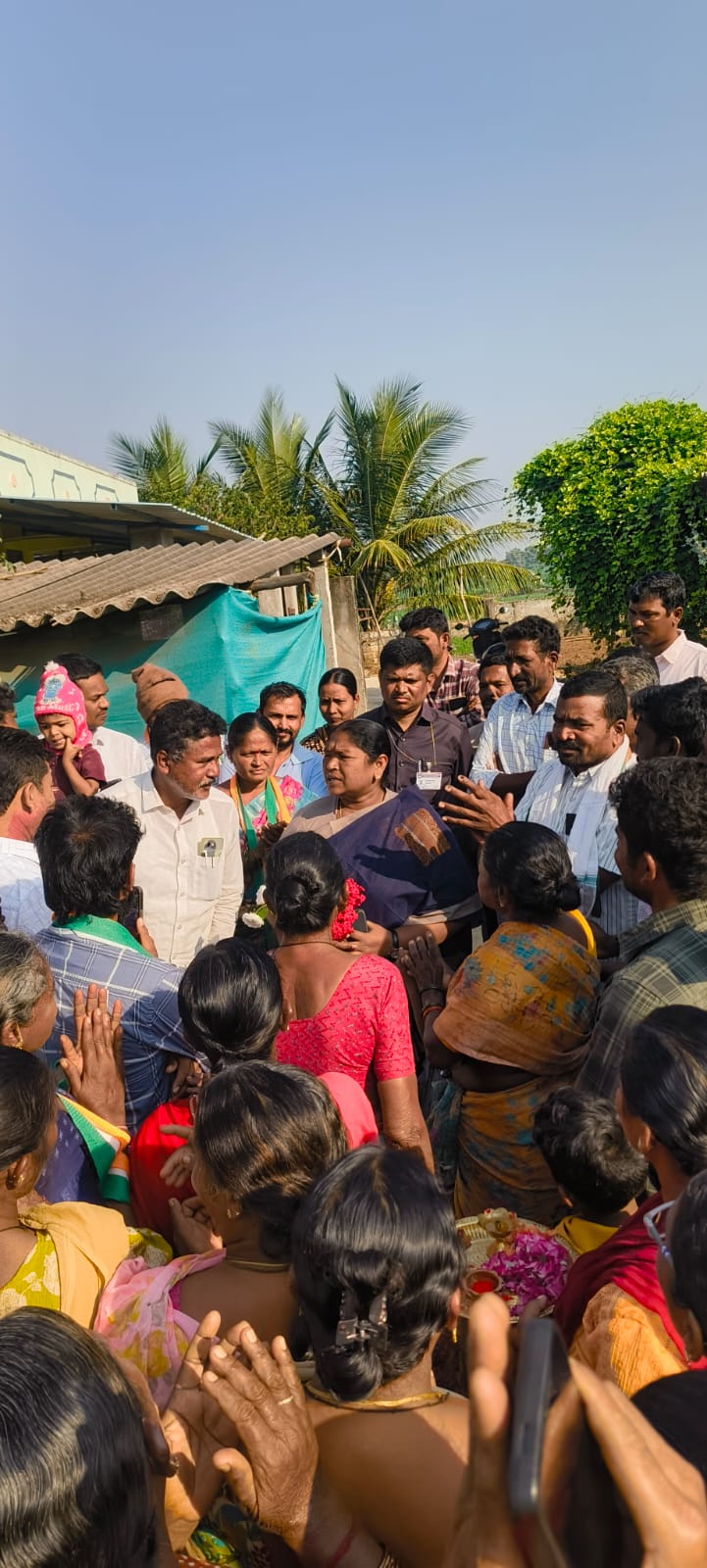 నేటి సాక్షి,నల్లబెల్లి ,డిసెంబర్ 13 : గోవిందపురం కాంగ్రెస్ అభ్యర్థి వాసం తిరుపతమ్మ సాంబయ్యను రాష్ట్ర మంత్రి సీతక్క నల్లబెల్లి మండలం గోవిందపురం గ్రామంలో కాంగ్రెస్ పార్టీ సర్పంచ్ అభ్యర్థిని కలిసి యోగక్షేమాలను తెలుసుకొని తన ఆశీర్వాదాలను అందజేశారు.సీతక్క గ్రామానికి చేరుకున్న వార్త తెలుసుకున్న వెంటనే గ్రామస్తులు, బంధువులు ఆమెను కలుసుకోవడానికి పోటీపడ్డారు.గ్రామంలో సీతక్కకు దగ్గరి బంధువులు ఎక్కువగా ఉండటంతో ఆమె రాకతో పండుగ వాతావరణం నెలకొంది.ఈ సందర్భంగా ప్రజలతో మమేకమై మాట్లాడిన సీతక్క, బంధువులను దగ్గరికి తీసుకొని యోగక్షేమాలు తెలుసుకున్నారు.సీతక్క రాకను తెలుసుకున్న గ్రామ మాజీ ఎంపీటీసీ జిల్లా మునీందర్,గ్రామ కాంగ్రెస్ పార్టీ అధ్యక్షుడు తోటరాజు,మండల కాంగ్రెస్ పార్టీ అధ్యక్షుడు చిట్యాల తిరుపతిరెడ్డి,జిల్లా కాంగ్రెస్ పార్టీ కార్యదర్శి మాలోతు రమేష్ సీతక్కను కలుసుకున్నారు.అధిక సంఖ్యలో మహిళలు, యువత, గ్రామస్తులు హాజరై కార్యక్రమాన్ని విజయవంతం చేశారు.సీతక్క పర్యటన గ్రామంలో కొత్త ఉత్సాహం, ప్రేరణను నింపిందని గ్రామస్తులు పేర్కొన్నారు.