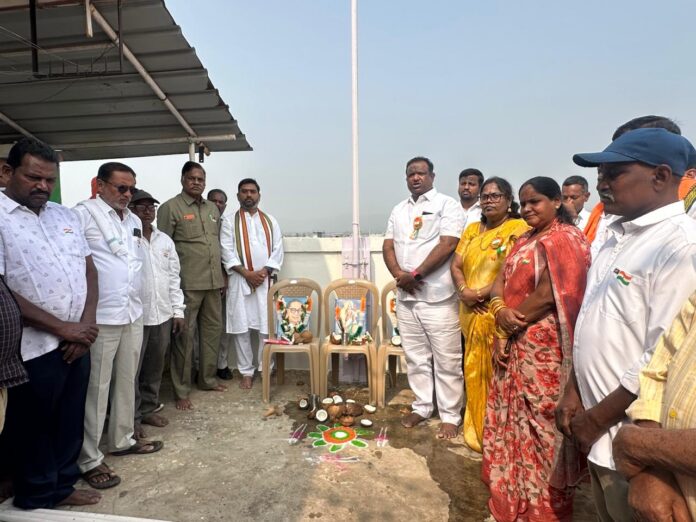 నేటి సాక్షి కొమరం భీం ఆసిఫాబాద్ ప్రతినిధి జనవరి 26 కొమురం భీం జిల్లా కాగజ్నగర్ పట్టణంలోని బీజేపీ కార్యాలయంలో నందు 77వ గణతంత్ర దినోత్సవం సందర్బంగా జిల్లా బీజేపీ సీనియర్ నాయకులు డా. కొత్తపల్లి శ్రీనివాస్.జాతీయ పతాకాన్ని ఆవిష్కరించి పట్టణ ప్రజలకు గణతంత్ర దినోత్సవ శుభాకాంక్షలు తెలిపారుఅనంతరం వారు మాట్లాడుతు ప్రపంచంలోనే అతిపెద్ద ప్రజాస్వామ్య దేశంగా భారత్ విరాజిల్లడానికి మన రాజ్యాంగమే పునాది అనిభారత రాజ్యాంగం కల్పించిన హక్కులు బాధ్యతలను ప్రతి పౌరుడు గుర్తుంచుకోవాలని దేశ సమగ్రత కోసం అభివృద్ధి కోసం ప్రతి ఒక్కరూ భాగస్వాములు కావాలని ప్రధానమంత్రి నరేంద్ర మోదీ నాయకత్వంలో దేశం అన్ని రంగాల్లో దూసుకుపోతోందని, ‘వికసిత్ భారత్’ లక్ష్యంగా ప్రతి కార్యకర్త కృషి చేయాలన్నారు.ఈ కార్యక్రమంలో MLA పాల్వాయి హరీష్ బాబు, డా. కొత్తపల్లి అనిత, పరిపెల్లి రాణి, మారోజు రాంబ్రహ్మం,హన్మంతు రావ్, సిందం శ్రీనివాస్, అరుణ్ లోయ, శివ గౌడ్, మనోహర్ గౌడ్,విజయ్, దెబ్బటి శ్రీనివాస్, పట్టణ బీజేపీ నాయకులు, శక్తి కేంద్రాల ఇన్ఛార్జ్లు, బూత్ స్థాయి కార్యకర్తలు మరియు అభిమానులు పెద్ద సంఖ్యలో పాల్గొన్నారు.