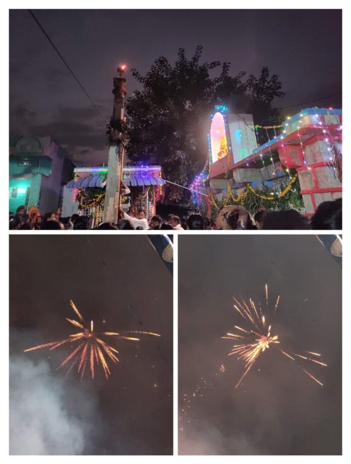 నేటి సాక్షి మండలంలోని కొండాపురం గ్రామంలో కార్తీక పౌర్ణమి సందర్భంగా ఆంజనేయ స్వామి గుడిలో కనివిని ఎరగని విధంగా ధూప దీప నైవేద్యాలు తో ఘనంగా అన్నదాన కార్యక్రమం నిర్వహించారు 1016 దీపాల తో గుడి ప్రాంగణంలో దీపాలంకరణ నిర్వహించారు అనంతరం సాయంత్రం ప్రముఖ గాయకుడు గట్టు నరేష్ భజన బృందంతో భజన కార్యక్రమం నిర్వహించి భక్తి శ్రద్దలతో కార్తీక పౌర్ణమి మొట్టమొదటిసారిగా గ్రామ పెద్దలు యువకుల సహకారంతో అద్భుతంగా నిర్వహించారు పూజారి దీవెనలు ఈ విధంగా ఆ పరమశివుని ఆశీస్సులు గ్రామం అన్ని రకాలుగా అభివృద్ధి చెందాలని ఐక్యమత్యంతో సుఖ సంతోషాలతో ఆయురారోగ్యాలతో అష్ట ఐశ్వర్యాలతో ఆదర్శ గ్రామంగా వెలుగొందుతోందని ఆశీర్వదించారు ఓం నమశ్శివాయ, శ్రీరామ జయరామ జయ జయ రామ, మృత్యుంజయ మంత్రము ఏకాత్మక మంత్రం పఠించారు ఈ కార్యక్రమంలో గ్రామ పెద్దలు , యువతి, యువకులు, చుట్టుపక్కల గ్రామ ప్రజలు తదితరులు పాల్గొన్నారు