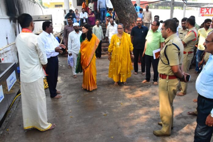 నేటి సాక్షి ప్రతినిధి, వేములవాడ : ( కోక్కుల వంశీ )వేములవాడలో భక్తుల రద్దీకి అనుగుణంగా ఏర్పాట్లు చేయాలని ఇంచార్జి కలెక్టర్ గరిమ అగ్రవాల్ ఆదేశించారు.భీమేశ్వర ఆలయంలో స్వామివారిని ఇంచార్జి కలెక్టర్ గరిమ అగ్రవాల్, ఎస్పీ మహేష్ బి గీతే దర్శించుకునేందుకు గురువారం వెళ్లగా, ఆలయ అర్చకులు స్వస్తితో స్వాగతం పలికారు.ఈ సందర్భంగా ఇంచార్జి కలెక్టర్, ఎస్పీ స్వామి వారిని దర్శించుకొని ప్రత్యేక పూజలు చేశారు. ఇంచార్జి కలెక్టర్, ఎస్పీ, వేములవాడ ఏఎస్పీ రుత్విక్ సాయి, ఆర్డీఓ రాధాభాయ్ ని అర్చకులు స్వామి వారి ప్రసాదం అందజేసి ఆశీర్వచనం అందజేశారు.*ఏర్పాట్ల పరిశీలన*సమ్మక్క సారలమ్మ జాతర, మహా శివరాత్రి నేపథ్యంలో ఆలయంలో తాగు నీటి సరఫరా, ప్రసాదం కౌంటర్ వద్ద ఏర్పాట్లు, పార్కింగ్ ఏరియా, టాయిలెట్లు, షవర్ స్నానాల ఏర్పాట్లను, కోడె మొక్కుల టికెట్ కౌంటర్, వీఐపీ, వీవీఐపీ, ప్రత్యేక దర్శనం క్యూలైన్లు, నీటి సరఫరాకు ఏర్పాట్లను కాలినడకన తిరుగుతూ ఇంచార్జి కలెక్టర్, ఎస్పీ పరిశీలించారు. బద్ది పోచమ్మ ఆలయం వద్ద నూతన భవనం స్లాబ్ పనులు పూర్తి చేసి, ప్రసాదం కౌంటర్లు ఏర్పాటు చేయాలని ఇంచార్జి కలెక్టర్ ఆదేశించారు. భీమేశ్వర, బద్ది పోచమ్మ ఆలయాల వద్ద భక్తులకు ఇబ్బందులు కలుగకుండా అన్ని ఏర్పాట్లు పకడ్బందీగా చేయాలని సూచించారు.పరిశీలనలో ఆర్అండ్ బీ ఈఈ నరసింహాచారి, ఆలయ ఈఈ రాజేష్, డీఈ రఘునందన్, తహసీల్దార్ విజయ ప్రకాశ్ రావు తదితరులు పాల్గొన్నారు.
