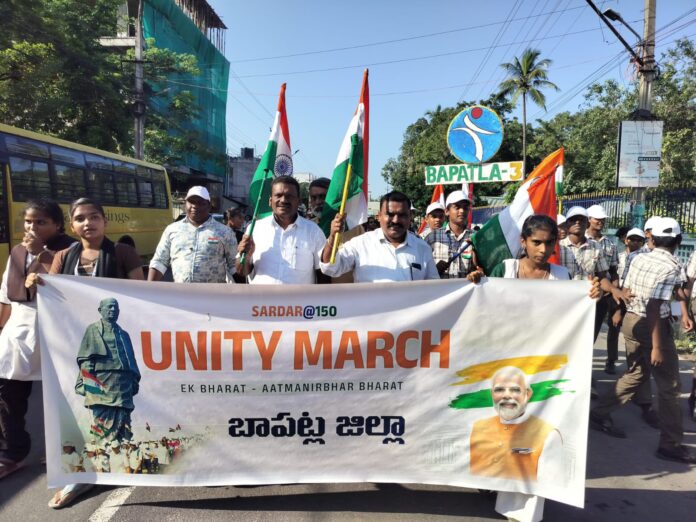 నేటి సాక్షి, బాపట్ల జిల్లా (బాపట్ల టౌన్)బాపట్ల పట్టణంలో శ్రీ ఛత్రపతి శివాజీ స్మారక సేవా సమితి వారి ఆధ్వర్యంలో భారీస్థాయిలో భారత్ ఏక్తా ర్యాలీ లో కార్యక్రమంలో ఆంధ్ర ప్రదేశ్ రాష్ట్ర మాజీ సైనిక సంక్షేమ సంఘం రాష్ట్ర అధ్యక్షులు తాండ్ర సాంబశివరావు పాల్గొన్నారు.బాపట్ల పట్టణం లో ఇంత పెద్ద ఎత్తున భారతదేశ ఉక్కుమనిషి సర్దార్ వల్లభాయ్ పటేల్ గారి 150 వ జయంతి సందర్భంగా భారీస్థాయిలో భారత్ ఏక్తా ర్యాలీ నిర్వహించటం సంతోషదాయకం అని రాష్ట్ర అధ్యక్షులు తాండ్ర సాంబశివరావు తెలియ జేశారు. బాపట్ల పట్టణం లోని మున్సిపల్ హై స్కూల్ నుండి టౌన్ హాల్ వరకు జరిగిన ర్యాలీని బాపట్ల శాసన సభ్యులు వేగేశన నరేంద్ర వర్మ రాజు ప్రారంభించగా, వివిధ రాజకీయ పార్టీల నాయకులు, సమాజసేవకులు, అనేక పాఠశాలల విద్యార్ధిని విద్యార్ధులు మరియు ఉపాధ్యాయులు పాల్గొన్నారు. బాపట్ల పట్టణంలో భారత్ ఏక్తా ర్యాలీ సందర్భంగా తిరంగా జెండాలు చేతబూని, భారత్ మాతకు జై నినాదాలతో హోరెత్తించారు. టౌన్ హాల్ ప్రాంగణంలో జరిగిన సభలో బీజేపీ బాపట్ల జిల్లా అధ్యక్షులు బంగారు బాబు తోపాటు పలువురు వక్తలు ప్రసంగించారు. రాష్ట్ర మాజీ సైనిక సంక్షేమ సంఘం అధ్యక్షులు తాండ్ర సాంబశివరావు మాట్లాడుతూ, స్వాతంత్ర్యం వచ్చిన తరువాత కూడా విడివిడిగా ఉన్న అనేక సంస్థానాలను భారతదేశంలో కలపటం వలన భారతదేశ సమైక్యతను కాపాడటంలో ప్రముఖ పాత్ర పోషించిన స్వాతంత్ర్య సమరయోధుడు ఉక్కుమనిషి సర్దార్ వల్లభాయ్ పటేల్ జయంతిని భారత్ ఏక్తా దివస్ గా జరుపుకుంటారు అని తెలియ జేసి, భారతీయులు అందరికి శుభా కాంక్షలు తెలియ జేశారు. కార్యక్రమంలో బీజేపీ జిల్లా అధ్యక్షులు బంగారు బాబు, ప్రముఖ బీజేపీ నాయకులు మోహన్ గౌడ్, తిలక్, కోట్రా శివరామకృష్ణ, వెంకటేశ్వర్లు, శ్రీనివాసరాజు, శర్మ, బాపట్ల మాజీ సైనిక సంక్షేమ సంఘం అధ్యక్షులు పుట్టా ఆదిశేషా రెడ్డి, ఉపాధ్యక్షులు చలికొండ వెంకట కృష్ణారావు, జాయింట్ సెక్రెటరీ పీటా సారధి, సీనియర్ మాజీ సైనికులు డి వెంకటేశ్వర్లు, పసుపులేటి ప్రసాద్ మొదలగు మాజీ సైనికులు పాల్గొన్నారు.