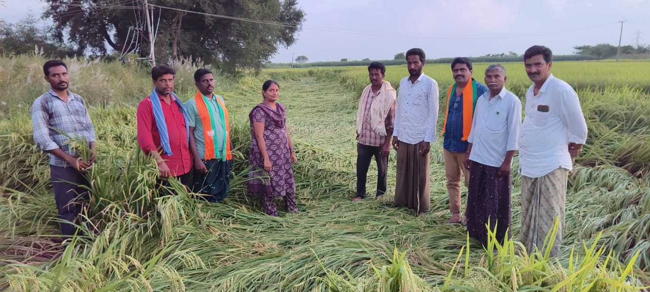 నేటి సాక్షి పాలేరు , అక్టోబర్ 25 :ఇటీవల కురుస్తున్న వర్షాలకు దెబ్బతిన్న వరి పొలాలను శనివారం జిల్లా బీజేపీ నాయకుడు గుండా ఉపేందర్ రెడ్డి మండల కిసాన్ మోర్ఛ అధ్యక్షులు కొత్త శ్రీనివాస్ రెడ్డి, బద్దం వెంకట రెడ్డి తో కలిసి పరిశీలించారు.. జక్కేపల్లి , పేరిక సింగారం రెవెన్యూ గ్రామాల పరిధిలో గత వారం రోజులుగా కురుస్తున్న భారీ వర్షాలు దెబ్బతిన్న పంట పొలాలను పరిశీలించిన అనంతరం మాట్లాడుతూ.. కూసుమంచి మండల పరిధిలోని రైతులు వర్షాల కారణంగా కోలుకొని విధంగా నష్టపోయారు.పత్తి పంట, మిర్చి పంటలతో పాటు చేతికి వచ్చిన వరి పంట నేలమట్టం కావడంతో పెట్టిన పెట్టుబడులు వచ్చే పరిస్థితి లేకుండా పోయింది. దీంతో రైతులు దిక్కుతోచని పరిస్థితి ఏర్పడింది. మరోవైపు కౌలు రైతులు ఎకరాకు నలభై వేల రూపాయల కౌలు, యాభై వేల రూపాయలు పైచిలుకు పెట్టుబడి పెట్టడం వలన వారు తీవ్రంగా నష్టపోయి అప్పులు ఊబిలోకి పోయారు అన్నారు..మంత్రి పొంగులేటి శ్రీనివాస్ రెడ్డి తక్షణమే స్పందించి సంబధిత అధికారులతో పంట నష్టం సర్వే చేయాలని, ప్రభుత్వం ఆదుకోవాలని, నష్టపోయిన పంటకు ఎకరాకు యాభై వేల రూపాయలు పరిహారం చెల్లించాలని డిమాండ్ చేశారు. అనంతరంవ్యవసాయ అధికారిని రామడుగు వాణితో చరవాణి ద్వారా వర్షాలతో దెబ్బతిన్న వరి పొలాలను విషయము తెలియజేశారు.. వెంటనే స్పందించి భారీ వర్షాలతో దెబ్బతిన్న పంట పొలాలను పరిశీలించడం జరిగినది అని తెలిపారు. ఏఓ రామడుగు వాణి దెబ్బతిన్న పంట పొలాలను మరొకసారి ఉన్నత అధికారులతో కలిసి పర్యటించి నివేదిక అందిస్తామని హామీ ఇచ్చినట్లు తెలిపారు. పంట నష్టపోయిన రైతులు బద్దం వెంకట రెడ్డి, అజ్మీరా మల్సూరు, రామిని శ్రీనివాస్ రెడ్డి, కొత్త రజనీకాంత్ రెడ్డి, బానోత్ నాగేశ్వర్ రావు రైతులు ఉన్నారు.