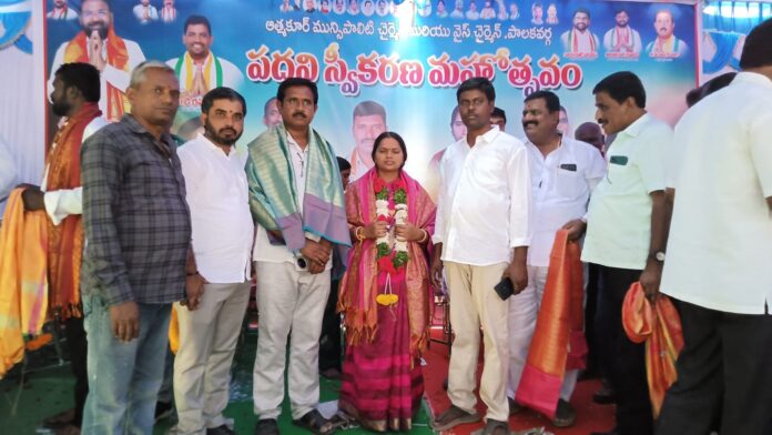 నేటి సాక్షి,నారాయణపేట, ఫిబ్రవరి 20 (రిపోర్టర్ ఇమామ్ సాబ్ ) నారాయణపేట జిల్లాలోని మక్తల్ మున్సిపల్ చైర్ పర్సన్ గా వాకిటి మానస హన్మంతు, వైస్ చైర్ పర్సన్ గా కుమారి శైవీ రెడ్డి ల పదవీ భాద్యతల స్వీకరణ కార్యక్రమానికి రాష్ట్ర క్రీడా,యువజన సర్వీసులు,పాడి పరిశ్రమ, పశుసంవర్ధక, మత్స్య శాఖ మంత్రి వాకిటి శ్రీహరి గారు, సతీమణి లలిత హాజరయ్యారు. కార్యాలయంలో పూజల అనంతరం ఇరువురినీ వారి కుర్చీలల్లో కూర్చోబెట్టి శుభాకాంక్షలు తెలియజేశారు. ఈ కార్యక్రమంలో కాంగ్రెస్ పార్టీ నాయకులు బాలరాజు మండల నాయకులు కార్యకర్తలు తదితరులు పాల్గొన్నారు.