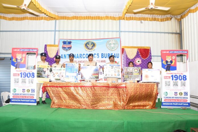 తెలంగాణ రాష్ట్రాన్ని మత్తు పదార్థాల రహిత రాష్ట్రంగా మార్చడమే లక్ష్యంగా తెలంగాణ రాష్ట్ర ప్రభుత్వం మరియు యాంటీ నార్కోటిక్ బ్యూరో వింగ్ వారి ఆదేశాల మేరకు నషా ముక్త్ భారత్,యాంటీ డ్రగ్ దినోత్సవం జూన్ 26 ఉన్నందున యాంటీ డ్రగ్ అవగాహన వారోత్సవాల్లో భాగంగా జిల్లా ఎస్పీ శ్రీ యోగేష్ గౌతమ్ ఐపీఎస్ ఆదేశాల మేరకు డీఎస్పీ ఎన్ లింగయ్య ఆధ్వర్యంలో నారాయణపేట జిల్లా కేంద్రంలోని జూనియర్ కళాశాల విద్యార్థులకు ఓ ఫంక్షన్ హాల్ లో ఏర్పాటు చేసిన డ్రగ్స్ మరియు మత్తు పదార్థాల వినియోగం వల్ల కలిగే అనర్ధాలపై నారాయణపేట డిఎస్పి ఎన్ లింగయ్య యాంటీ నార్కోటిక్ బ్యూరో డిఎస్పి బుచ్చయ్య లు విద్యార్థులతో మాట్లాడి మత్తు పదార్థాల వినియోగం వలన కలుగు నష్టాల పై అవగాహన కల్పించారు.