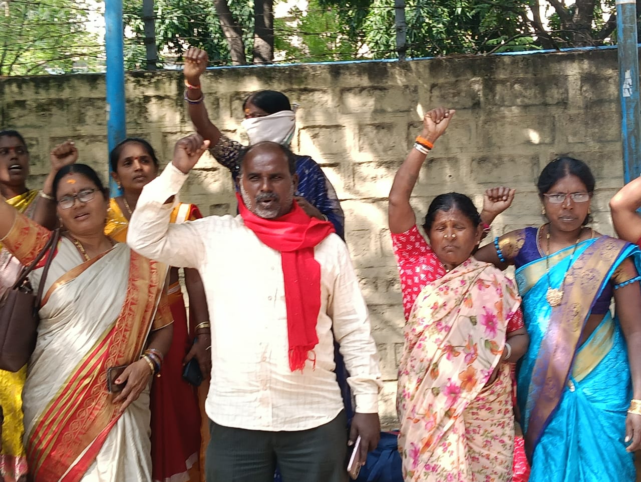 నేటి సాక్షి, నారాయణపేట, నవంబర్ 24, ప్రభుత్వ పాఠశాలలో పనిచేస్తున్న మధ్యాహ్న భోజన కార్మికుల సమస్యలను పరిష్కరించాలంటూ కార్మికుల అధ్వానంలో సోమవారం అధ్వానంలో సోమవారం కమిషనర్ కార్యాలయం ముట్టడి కార్యక్రమాన్ని నిర్వహించారు. ఈ సందర్భంగా మా మధ్యాహ్న భోజన కార్మిక సంఘం రాష్ట్ర కార్యవర్గ సభ్యులు పి వెంకటేష్ మాట్లాడుతూ తెలంగాణ రాష్ట్రంలో 54,000 మంది పనిచేస్తున్నారన్నారు. అనేక సమస్యలతో ఇబ్బందులకు గురవుతున్నారని ఆయన వివరించారు. నేటికీ మధ్యాహ్న భోజన కార్మికులకు ప్రభుత్వం బిల్లులు చెల్లించడంలో ఇబ్బందుల గురిచేస్తున్నారన్నారు. కార్మికులు అనేక అప్పులు చేసి కార్యక్రమాన్ని నిర్వహిస్తూ అనేక అవస్థ పాలవుతున్న ప్రభుత్వం పట్టించుకోవడం లేదన్నారు. పరిష్కారం కొరకై పోరాటానికి సిద్ధమయ్యారన్నారు. తెలంగాణ ఏర్పడిన తర్వాత గత ప్రభుత్వం దుష్ప్రచారం చేసిందన్నారు. ప్రస్తుతం ప్రభుత్వ పాఠశాలలో కోడిగుడ్లను ప్రభుత్వమే చెల్లించాలన్నారు. 9 10 తరగతి లకు అల్పాహార బిల్లులను వెంటనే చెల్లించాలన్నారు. కేంద్ర ప్రభుత్వం మధ్యాహ్న భోజన కార్మికులకు 600 రూపాయలు ఇస్తున్నది. సమాన పనికి సమాన వేతనం 26 వేల రూపాయలు చెల్లించాలని ఆయన డిమాండ్ చేశారు. ప్రభుత్వం వెంటనే అమలు చేయాలన్నారు. అక్షయ పాత్ర ను వెంటనే రద్దు పరచాలన్నారు లేనియెడల మధ్యాహ్న భోజన కార్మికుల ఆధ్వర్యంలో దశలవారీగా ఆందోళన కార్యక్రమాలు నిర్వహిస్తామని ఆయన హెచ్చరించారు ఈ కార్యక్రమంలో కార్మికుల చెన్నమ్మ లక్ష్మమ్మ, ఎల్లమ్మ రమేష్ మొగులమ్మ రాములు తదితరులు పాల్గొన్నారు.
