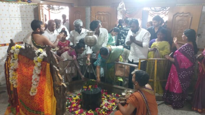 ( నేటి సాక్షి): శంకర్పల్లి మండల పరిధిలోని చందిప్ప గ్రామంలో వెలసిన 11వ శతాబ్దపు శ్రీ మహిమగల బ్రహ్మసూత్ర మరకత శివాలయంలో నూతన సంవత్సరం వేళ గురువారం సుమారు 25 వేల మంది భక్తులు హాజరై, క్యూలైన్లో నిల్చుని, స్వామి వారిని దర్శించుకొని, మొక్కులు చెల్లించుకున్నారు. ఆలయ నిర్వాహకులు పూర్తిగా అభిషేకాలు రద్దు చేశారు. ఆలయ అర్చకులు సాయిశివ, ప్రమోద్, వీరేష్ లు భక్తులకు తీర్థప్రసాదాలు అందజేశారు. న్యూ ఇయర్ రోజున ఆలయాలను దర్శిస్తే అన్ని శుభాలు జరుగుతాయని, భక్తులు నమ్మకం అని ఆలయ గౌరవ అధ్యక్షుడు సదానందం గౌడ్ తెలియజేశారు. దర్శనానికి సుమారు రెండు గంటల సమయం పట్టిందని భక్తులు మీడియాతో చెప్పారు. ఏ అవాంఛనీయ ఘటనలు జరగకుండా సీఐలు శ్రీనివాస్ గౌడ్, వీరబాబు గౌడ్ ఆధ్వర్యంలో పోలీసులు భారీ బందోబస్తు ఏర్పాటు చేశారు. కార్యక్రమంలో ఎస్ఐలు సురేష్, సంతోష్ రెడ్డి, శ్రీశైలం, అన్నదాన కమిటీ చైర్మన్ దర్శన్ గౌడ్, కమిటీ సభ్యులు జనార్ధన్, హనుమంతు తదితరులు ఉన్నారు.