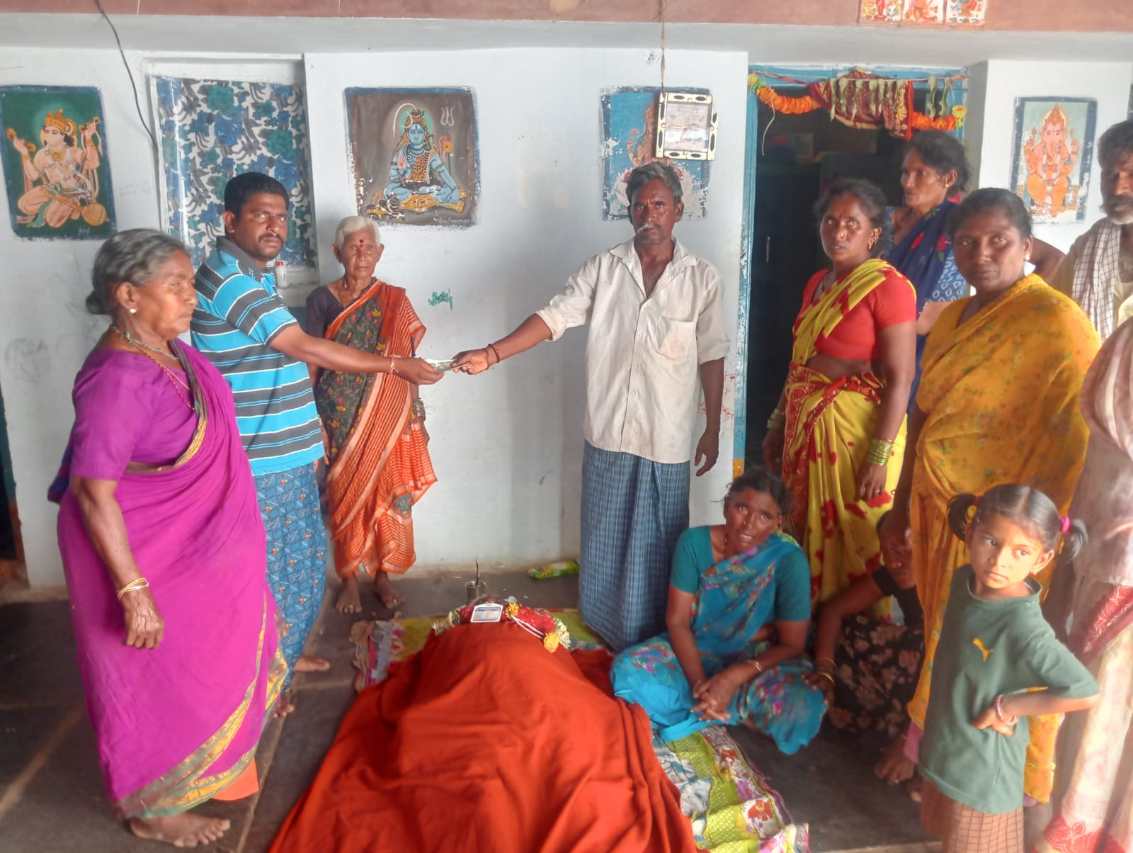 నేటి సాక్షి 18 ఏప్రిల్ పాములపాడు:- పాములపాడు మండలంలోని, పెంచికల పల్లె గ్రామం, యాండ్ల అంకాలమ్మ 1872/11, భజన కళాకారిణి ఆకస్మికంగా మరణించారు. వారి ఆత్మకు శాంతి చేకూరాలని శ్రీ వేంకటేశ్వర స్వామిని మనసారా ప్రార్థిస్తూ వారి కుటుంబానికి ప్రగాఢ సానుభూతి తెలియజేస్తున్నామన్నారు. భజన కళాకారులకు సహాయనిధిగా ఏర్పాటు చేసిన ప్రాజెక్ట్ లో వారు రూ: 100/- సభ్యత్వం కట్టి చేరినందున ఆమె మరణించిన సందర్భంగా కుటుంబానికి అఖిలభారత ప్రాచీన తెలుగు జానపద వృత్తి కళాకారుల సంఘం తిరుపతి నుండి 5,000/- రూపాయలు, జిల్లా అధ్యక్షుడు నాగేష్ నాయకత్వంలో మండల అధ్యక్షుడు మరియు బృందం లీడర్ నాగలింగయ్య ద్వారా అందజేయడం జరిగింది. దీని ఉద్దేశం గ్రామాలలో భజన సంస్కృతి మరింత పెరగడానికి, భజన కళాకారులు భజన చేయడానికి ముందుకు వచ్చేదానికి, మన ఆధ్యాత్మిక ధర్మప్రచారం మరింత పెంచడానికి మావంతు ప్రయత్నం చేస్తున్నామన్నారు. మాకు మీరంతా సహకరించాలని జాతీయ అధ్యక్షులు పులిమామిడి యాదగిరి కోరారు.