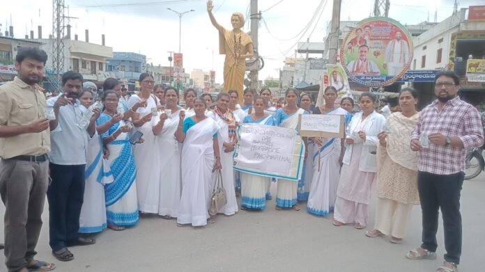సాక్షి,నారాయణపేట. జూన్ 19, నారాయణపేట జిల్లాలోని మరికల్ మండల కేంద్రంలో గురువారం నిర్మూలనకు ప్రతి ఒక్కరు ఓఆర్ఎస్ ప్యాకెట్ను వాడాలంటూ ఆశా కార్యకర్తల ఆధ్వర్యంలో మరికల్ మండల కేంద్రంలో ర్యాలీ కార్యక్రమాన్ని నిర్వహించారు. ఈ సందర్భంగా మరికల్ ప్రాథమిక ఆరోగ్య కేంద్రం డాక్టర్ రాఘవేందర్ రెడ్డి మాట్లాడుతూ గోరువెచ్చని నీళ్లను ప్రతి ఒక్కరు తాగాలని అట్టి వాటర్ లో వారేజ్ ప్యాకెట్ను తప్పనిసరిగా వాడాలన్నారు. ఆశా కార్యకర్తల ఆధ్వర్యంలో ప్రతి ఇంటికి అతిసారా వ్యాధిపై అవగాహన కల్పించడం జరుగుతుందని ఆయన వివరించాడు. ఈ కార్యక్రమంలో డాక్టర్ కిరిమి, శ్రావణి, అర్చన, సూపర్వైజర్ ల్యాబ్ టెక్నీషియన్ అధికారులు మరియు హాస్పటల్ సిబ్బంది ఆశా కార్యకర్తలు ర్యాలీ కార్యక్రమంలో పాల్గొన్నారు.