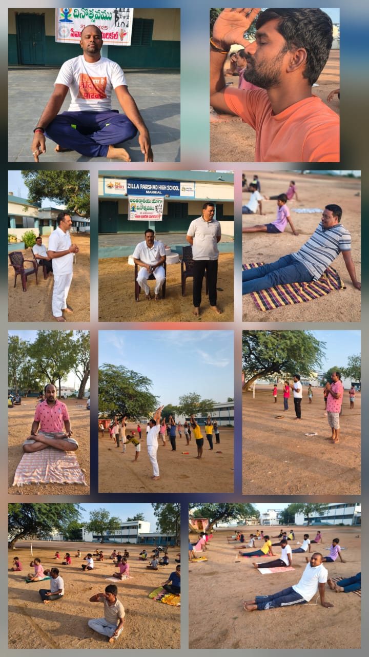 నేటి సాక్షి,నారాయణపేట, జూన్ 21,11వ అంతర్జాతీయ యోగా దినోత్సవాన్ని పురస్కరించుకుని, యోగా గొప్పతనాన్ని ప్రపంచానికి మరలా గుర్తుచేసేందుకు దేశవ్యాప్తంగా చేపట్టిన కార్యక్రమంలో భాగంగా శనివారం ఉదయం 6 గంటలకు జిల్లా పరిషత్ హై స్కూల్ మరికల్ ప్రాంగణంలో యోగా కార్యక్రమం నిర్వహించడం జరిగింది.ఈ కార్యక్రమానికి ముఖ్యఅతిథిగా మరికల్ సబ్ ఇన్స్పెక్టర్ రాములు సార్ గారు విచ్చేశారు.ఈ కార్యక్రమంలో లో గ్రామ పెద్దలు, యువకులు, అఖిలపక్ష నాయకులు పెద్ద ఎత్తున పాల్గొని విజయవంతం చేశారు.