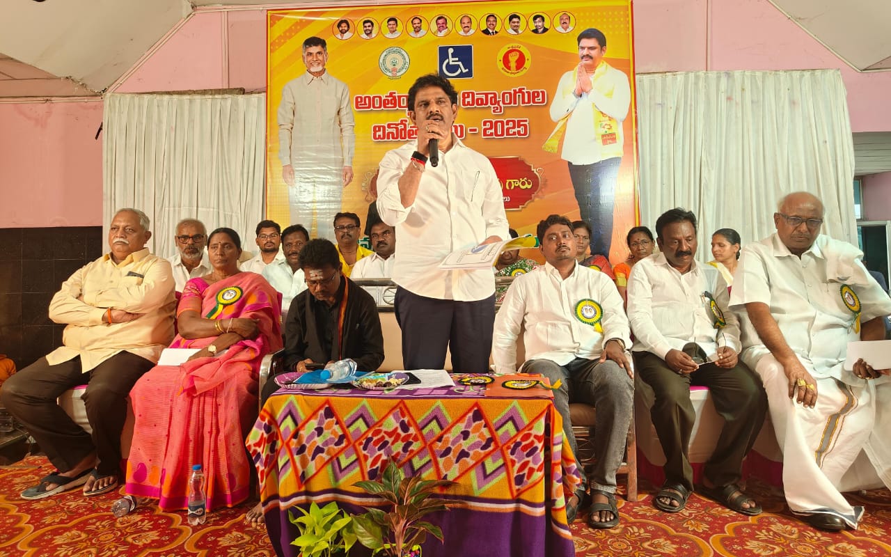 నేటి సాక్షి;బాపట్ల జిల్లా (పర్చూరు)మహిళా సంఘాల స్ఫూర్తితో దివ్యాంగుల గ్రూపులు కూడా తమ స్వయం సంఘాలను బలోపేతం చేసుకుని ఆర్థిక విప్లవం దిశగా ముందుకు సాగుతున్న తీరు అభినందనీయమని ఎమ్మెల్యే ఏలూరి సాంబశివరావు పేర్కొన్నారు. బుధవారం ప్రపంచ దివ్యంగుల దినోత్సవం కార్యక్రమంలో భాగంగా చిన్నగంజాం మండల కేంద్రంలో జరిగిన కార్యక్రమానికి ముఖ్య అతిథిగా ఎమ్మెల్యే ఏలూరి సాంబశివరావు హాజరయ్యారు. ఈ సందర్భంగా ఆయన దివ్యాంగులతో ఆయన ఆప్యాయంగా ముచ్చటిస్తూ, వారి అవసరాలు, సమస్యలు తెలుసుకున్నారు. ఈ సందర్భంగా ఆయన మాట్లాడుతూ దివ్యాంగులు సమాజంలో అత్యంత పట్టుదలతో జీవితం గెలిచే యోధులు అని, వారి ఆర్థిక–సామాజిక అభివృద్ధికి ప్రభుత్వం పోషించే పాత్ర ఎంతో కీలకమని ఎమ్మెల్యే ఏలూరి పేర్కొన్నారు. స్వయం సహాయక సమూహాల తరహాలో దివ్యాంగులకు ప్రత్యేక మద్దతు, రుణాలు, శిక్షణలు, ఉపాధి అవకాశాలను ప్రభుత్వం మరింత విస్తృతంగా అందించడానికి కట్టుబడి ఉన్నామని స్పష్టం చేశారు.దివ్యాంగుల సంక్షేమం మా ప్రభుత్వానికి అత్యంత ప్రాధాన్య అంశం ఉపాధి, విద్య, ఆరోగ్యం, పింఛన్ల పెంపు, నైపుణ్యాభివృద్ధికి ప్రత్యేక కార్యక్రమాలు అమలు చేస్తున్నారు.గ్రామ స్థాయిలో దివ్యాంగులు ఎదుర్కొనే సమస్యలను పరిష్కరించేందుకు ప్రత్యేక యంత్రాంగాన్ని బలోపేతం చేస్తున్నామని తెలిపారు. మహిళ ఆర్థిక శక్తి పెరిగేలా వారిని నమ్మి వారికి ఎన్నో అవకాశాలు కల్పిస్తూ, ఆర్థిక విప్లవానికి నాంది పలికిన వ్యక్తి ముఖ్యమంత్రి నారా చంద్రబాబు నాయుడు అని కొనియాడారు. దివ్యాంగులు తయారు చేసిన వస్తువులను అభినందిస్తూ, ప్రభుత్వ సహకారంతో మరిన్ని అవకాశాలు కల్పించేందుకు కృషి చేస్తామని హామీ ఇచ్చారు.అంతర్జాతీయ దివ్యంగుల దినోత్సవాన్ని పురస్కరించుకుని వారి విశిష్టతను చాటుకుంటం ఎంతో గర్వించదగ్గ విషయం అన్నారు. దివ్యాంగులకు ఉపయోగపడే వస్తువులు అందించడం కూటమి ప్రభుత్వం ఏర్పడిన వెంటనే దివ్యాంగులకు రూ. 6వేల పెన్షన్ పెంచడం జరిగిందన్నారు. పెరిగిన పెన్షన్ తో రోజువారి ఖర్చులకు ఇవి ఎంతగానో ఉపయోగపడుతాయని తెలిపారు. నియోజకవర్గ ప్రత్యేక అధికారి లవన్న మాట్లాడుతూ దివ్యాంగులు వారి కాళ్ళ మీద వారు నిలబడేలా బడ్డీ కొట్టు పెట్టుకోవటం, పడ్లు, కూరగాయలు వండి చిన్నచిన్న వ్యాపారాలు చెయ్యటం, ఆటో నడపడం వాటి మీద వ్యాపారాలు చేయటం, గ్రామాల్లో ఇంటర్నెట్ సెంటర్లు ఏర్పాటు చేసుకోవడం ఇలా ఎన్నో రంగాల్లో దివ్యాంగులు రాణించడం గర్వించదగ్గ విషయం అన్నారు.*అవసరమైన పరికరాల పంపిణీ – లబ్ధిదారులకు రుణాల మంజూరు*కార్యక్రమంలో పలువురు దివ్యాంగులకు ప్రభుత్వం అందించే వివిధ సహాయక పరికరాలను పంపిణీ చేశారు. అందులో భాగంగా చేతి కర్రలు,నడుం బెల్టులు,వీల్ చెయ