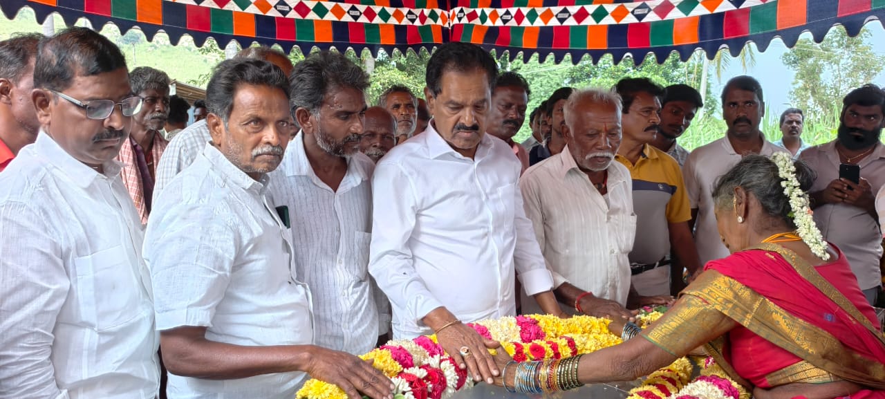 నేటి సాక్షి తిరుపతి (బాదూరు బాల)*ఎస్ఆర్ పురం* వెంకటాపురంలోని మాజీ సర్పంచ్ చంద్రగిరి వెంకటేష్ @ మోషే శుక్రవారం అనారోగ్యంతో మృతి చెందారు. ఈ సమాచారం తెలుసుకున్న మాజీ డిప్యూటీ సీఎం నారాయణస్వామి శనివారము వెంకటాపురం చేరుకుని మాజీ సర్పంచ్ భౌతిక కాయానికి పూలమాలవేసి నివాళులర్పించారు. సమితీ ప్రెసిడెంట్ గా ఉన్న సమయంలో ఆయనతో ఉన్న అనుబంధాన్ని గుర్తు చేసుకున్నారు. బాదిత కుటుంబ సభ్యులు చంద్రగిరి తంభయ్య సోదరులు, సర్పంచ్ సతీమణిని ఓదార్చారు.ఈ కార్యక్రమంలో వైసీపీ నాయకులు పెద్ద సంఖ్యలో పాల్గొన్నారు.