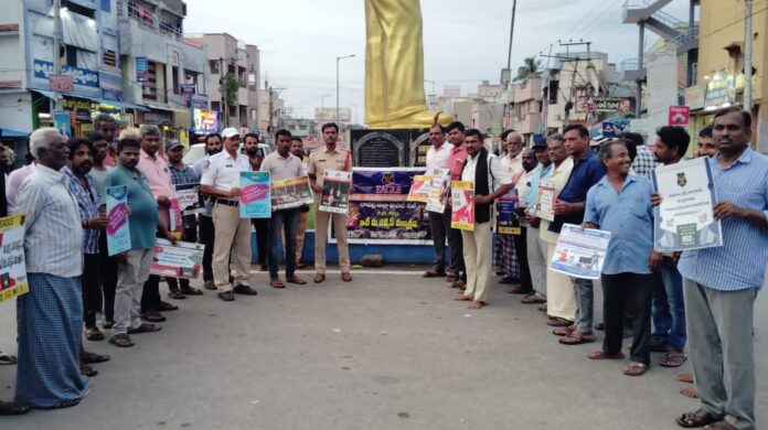 నేటి సాక్షి, బాపట్ల జిల్లా (బాపట్ల టౌన్) ఈగల్ చీఫ్ ఆకే రవి కృష్ణ ఐపిఎస్ ఆదేశాలు మేరకు , బాపట్ల జిల్లా ఎస్పీ ఉమా మహేశ్వర్ ఐపీఎస్ సూచనలు మేరకు గురువారం బాపట్ల ఈగల్ టీమ్ ఆధ్వర్యంలో బాపట్ల జిల్లా, బాపట్ల టౌన్ పోలీస్ స్టేషన్ సీఐ రాంబాబు , బాపట్ల అంబేద్కర్ సెంటర్ నందు మాదకద్రవ్యాలను పూర్తిస్థాయిలో నివారించడమే లక్ష్యంగా పనిచేస్తున్నామని అన్నారు. చాలామంది యువత మాదకద్రవ్యాల బారిన పడి జీవితాన్ని పాడు చేసుకుంటున్నారని, తల్లితండ్రులు వారి పిల్లలపై ప్రత్యేక దృష్టి సారించి వారి నడవడికను గుర్తించాలన్నారు. ఎక్కడైనా ఎవరైనా విద్యార్థులు చిన్నారులు మాదక ద్రవ్యాలు సేవిస్తున్నట్లు మీ దృష్టికి వస్తే తక్షణమే పోలీసులకు సమాచారం అందించాలన్నారు. తమ పిల్లలు కాదుగా తమకు ఎందుకులే అనుకునే భావనతో ప్రజలు ఉండవద్దని రానున్న రోజుల్లో తమ పిల్లలు కూడా డ్రగ్స్ కు అలవాటై ఇబ్బంది పడితే ఆ బాధలు తెలుస్తాయన్నారు. ఇప్పటికే అనేకమందిని గుర్తించి ఈగల్ టీం ఆధ్వర్యంలో వారికి కౌన్సిలింగ్ చేసి యువతలో మార్పు తీసుకు వస్తున్నామని, మాదకద్రవ్యాలు ఎక్కడైనా విక్రయిస్తున్న సేవిస్తున్న మాకు *1972 టోల్ ఫ్రీ నెంబర్ ద్వారా సమాచారం అందించాలని కోరారు డ్రగ్స్ వద్దు బ్రో అనే నిన్నదాని అందరిచేత పలికించారు. ఈ కార్యక్రమంలో బాపట్ల టౌన్ పోలీస్ సిబ్బంది మరియు ఈగల్ టీమ్ పాల్గొన్నారు.