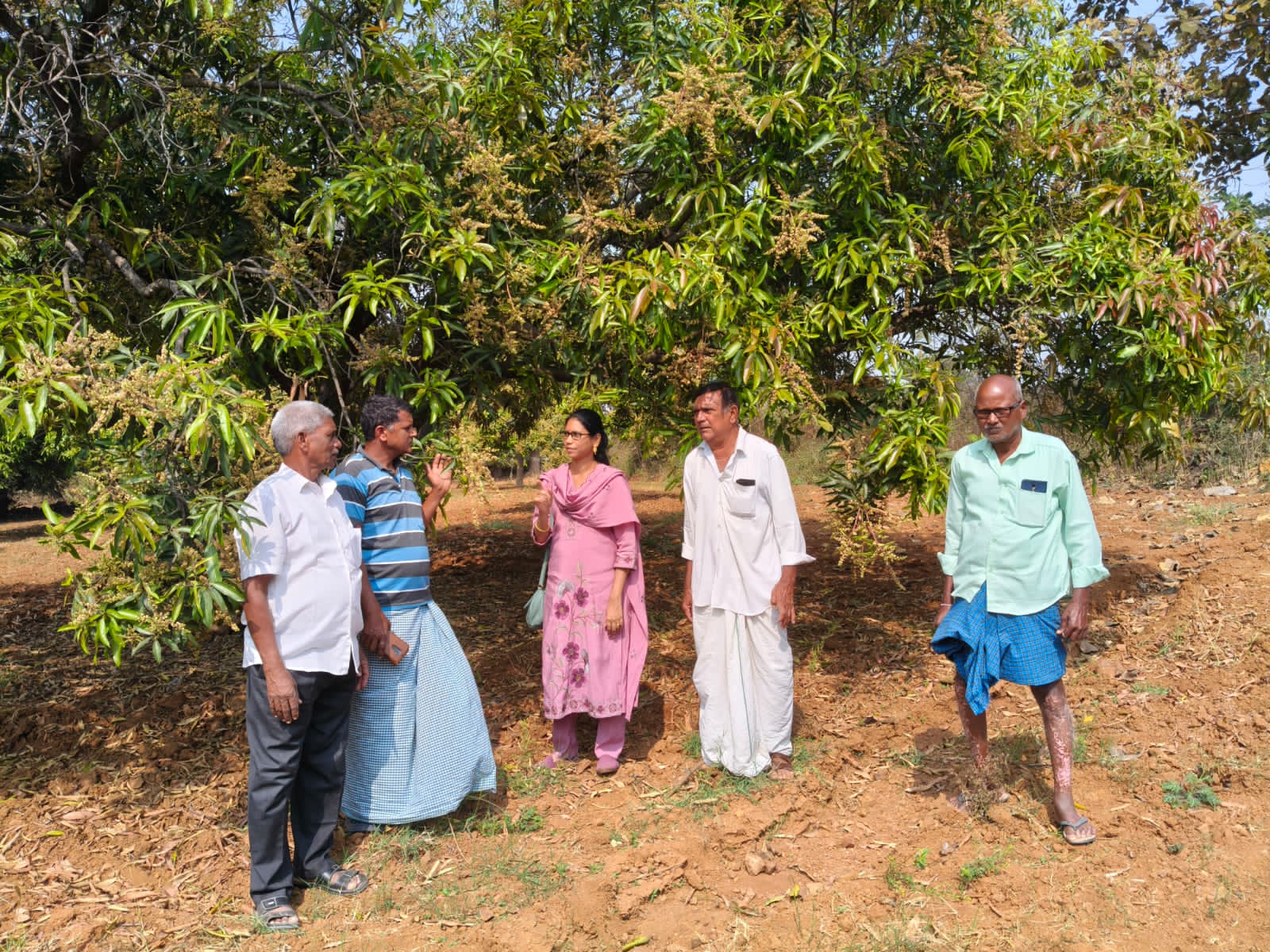 నేటి సాక్షి – రాయికల్ ( ఇమ్మడి విజయ్ కుమార్ ) : జగిత్యాల నియోజకవర్గం ఉద్యాన అధికారి కందుకూరి స్వాతి గురువారం రాయికల్ మండలంలోని పలు గ్రామాల్లోని మామిడి తోటలను పరిశీలించారు. ఈ సందర్బంగా ప్రస్తుతం చేపట్టే సస్య రక్షణ చర్యలను రైతులకు వివరించారు. ప్రస్తుతం మామిడి తోటలు పిందె కట్టే దశలో ఉన్నాయని ఈ సమయంలో నీటి ఎద్దడికి గురిచేయకుండా సక్రమంగా నీటి తడులు అందించాలన్నారు. లేనిచో కట్టిన పిందె రాలిపోయే అవకాశం ఉంటుందని తెలిపారు. అదేవిధంగా తేనెమంచు పురుగు, తామర పురుగు వంటి రసం పీల్చు పురుగు ఉధృతి ఎక్కువగా ఉన్న తోటల్లో ఇమిడాక్లోప్రిడ్ 4ml లేదా తయోమెథక్సిమ్ 4గ్రాములు,వేపనూనె (10000ppm ) 20 ml 10 లీటర్ల నీటికి కల్పి స్ప్రే చేయాలన్నారు.బూడిద తెగులు ఆశించిన తోటలకు హేగ్జాకోనాజోలు 20 ml 10 లీటర్ల నీటికి కల్పి స్ప్రే చేయాలన్నారు.బఠాణి సైజు దశలో పిందె రాలడాన్ని నివారించుటకు ప్లానోఫిక్స్ అనే హార్మోనును 2.5ml 10 లీటర్ల నీటికి కల్పి స్ప్రే చేయాలని సూచించారు. పిందెలు నిమ్మకాయ సైజు దశలో ఉన్నప్పుడు కాయ సైజు త్వరగా పెరగడానికి 13-0-45 100 గ్రాములు 10 లీటర్ల నీటికి కల్పి స్ప్రే చేయాలన్నారు.ఈ కార్యక్రమం లో ఉద్యాన విస్తరణ అధికారి రాజేష్ మరియు రైతులు పాల్గొన్నారు.