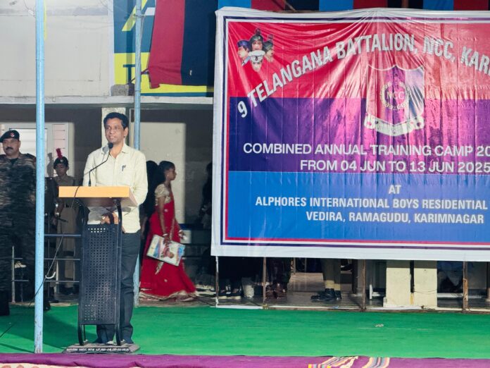 నేటి సాక్షి: రామడుగు:(పురాణం సంపత్) రామడుగు మండలం వెధిర గ్రామంలోని ఆల్ ఫోర్స్ పాఠశాలలో గత పది రోజుల నుండి నిర్వహిస్తున్నటువంటి ఎన్సిసి క్రెడిట్ శిక్షణ శిబిరం గురువారం ముగింపు కార్యక్రమం ఘనంగా నిర్వహించారు. ఈ కార్యక్రమానికి ముఖ్యఅతిథిగా ఆల్ఫోర్స్ విద్యా సంస్థల చైర్మన్ ఊట్కూరి నరేందర్ రెడ్డి, కమాండర్ సునీల్ అబ్రహం,కల్నల్ ఏకే జయంత్ పాల్గొన్నారు.ఈ సందర్భంగా నరేందర్ రెడ్డి మాట్లాడుతూ విద్యార్థులకు దేశ రక్షణ పట్ల సమగ్రంగా అవగాహన కల్పించడమే కాకుండా వాటిలోని విషయాలను ముఖ్యంగా దేశాన్ని పరిరక్షించే విధానాలను విశ్లేషణాత్మకంగా తెలియజేసినట్లయితే విద్యార్థుల్లో ఆసక్తి పెరుగుతుందని అన్నారు.అలాగే జయంత్ మాట్లాడుతూ జాతీయస్థాయిలో భద్రత అనేది చాలా కీలకమైన అంశం అని అన్నారు.అలాగే విద్యార్థులకు అన్ని రకాలుగా వసతులు కల్పించినటువంటి విద్యా సంస్థకు ప్రత్యేక అభినందనలు తెలిపారు.ఈ కార్యక్రమంలో విద్యార్థులు పలు సంస్కృతిక కార్యక్రమాలతో ఆకట్టుకున్నారు.ఇక్కడ అడ్మిన్ ఆఫీసర్ కృష్ణ,సుబేదార్ మేజర్ సాగర్ సింగ్,పాఠశాల సిబ్బంది,తల్లిదండ్రులు పాల్గొన్నారు.