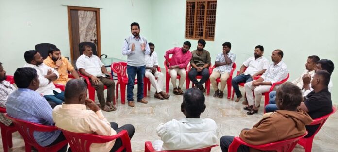 నేటి సాక్షి వికారాబాద్:వికారాబాద్ మున్సిపాలిటీ పరిధిలోని 12 వ వార్డు కొంపల్లి గ్రామానికి సంబందించిన బీ ఆర్ ఎస్ పార్టీ ముఖ్య నాయకుల సమావేశంలో పాల్గొన్న వికారాబాద్ జిల్లా బీ ఆర్ ఎస్ పార్టీ అధ్యక్షులు, మాజీ ఎమ్మెల్యే డాక్టర్ మెతుకు ఆనంద్ ఈ సందర్బంగా ఆయన.. పార్టీ నాయకులు కార్యకర్తలు అందరూ కలిసికట్టుగా, సమన్వయంతో ముందుకు సాగుతూ రాబోయే మున్సిపల్ ఎన్నికలలో విజయమే లక్ష్యంగా పనిచేయాలన్నారు.ఈ సమావేశంలో పట్టణ బీ ఆర్ ఎస్ పార్టీ అధ్యక్షులు గోపాల్ ముదిరాజ్, పట్టణ బీ ఆర్ ఎస్ పార్టీ మాజీ అధ్యక్షులు ప్రభాకర్ రెడ్డి పట్టణ కార్యనిర్వాహక అధ్యక్షులు సుభాన్ రెడ్డి గ్రామ బీ ఆర్ ఎస్ పార్టీ నాయకులు పాల్గొన్నారు.
