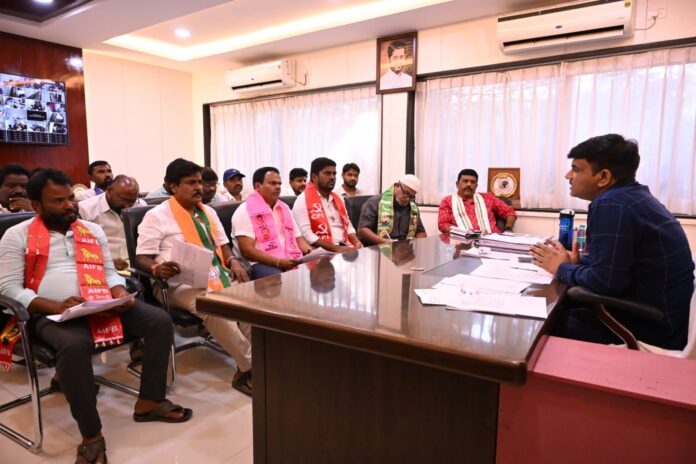 నేటి సాక్షి, కరీంనగర్‌: త్వరలో నిర్వహించనున్న మున్సిపల్‌ ఎన్నికల ఏర్పాట్లపై కమిషనర్‌ ప్రఫుల్‌దేశాయ్‌ అన్ని రాజకీయ పార్టీల నాయకులతో బుధవారం నగరపాలక సంస్థ కార్యాలయంలో సమావేశం ఏర్పాటుచేశారు. పోలింగ్‌ కేంద్రాల ఏర్పాట్లు, ఓటర్ల జాబితాపై వారి నుంచి పలు సలహాలు, సూచనలను స్వీకరించారు. ఏఐఎఫ్‌బీ జిల్లా ప్రధాన కార్యదర్శి బండారి శేఖర్‌, కాంగ్రెస్‌ కార్పొరేషన్‌ అధ్యక్షుడు వైద్యుల అంజన్‌కుమార్‌తో పాటు పలు పార్టీల నాయకులు పాల్గొన్నారు.
