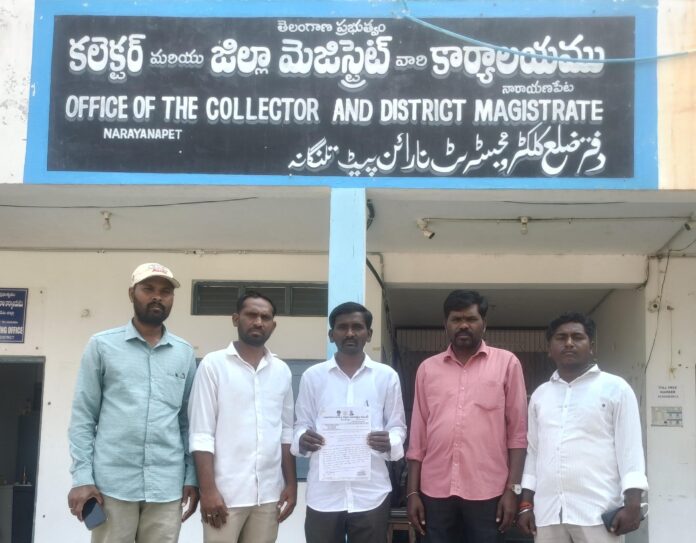 నేటి సాక్షి, నారాయణపేట మార్చు 10, (రిపోర్టర్ ఇమామ్ సాబ్ )నారాయణపేట జిల్లా జిల్లాలోని కలెక్టర్ కార్యాలయంలో సమాచార హక్కు చట్టం పరిరక్షణ కమిటీ తెలంగాణ రాష్ట్ర అధ్యక్షులు ఎలిగండ్ల వెంకటేష్ ముదిరాజ్ ఆధ్వర్యములో జిల్లా కలెక్టర్ మరియు మెజిస్ట్రేట్ గారి కార్యాలయ పి ఐ ఓ గారికి తారీకు 07-11-2025 నాడు సమాచారం కోసం దరఖాస్తు చేస్తే, పి ఐ ఓ సెక్షన్ 6(3) ప్రకారంగా జిల్లాలోని అన్ని శాఖలకు బదిలి చేసే క్రమంలో నారాయణపేట మున్సిపాలిటీ కార్యాలయనికి బదిలీ చేస్తే, అక్కడున్న పి ఐ ఓ నిర్లక్ష్యంగా సమాచారం కోసం దరఖాస్తు చేసిన 7 అంశాలకు నిల్ అని సమాధానం ఇస్తూ, ఇందులో సెక్షన్ 4(1)(బి) అడిగిన అట్టి అంశానికి కూడా నిల్ అని సమాధానం లెటర్ పూర్వకంగా పంపించారు. ఇంత నిర్లక్ష్యంగా సమాచార హక్కు చట్టాన్ని బలహీనపరిచే విధంగా, డ్యూటీ పరంగా ఇంత నిర్లక్ష్యం చేసిన అట్టి అధికారిపై చట్టపరంగా చర్యలు తీసుకొని సస్పెండ్ చేయాలని నారాయణపేట జిల్లా అడిషనల్ కలెక్టర్ ఫణీంద్ర రెడ్డి గారికి కంప్లయింట్ ఇవ్వడం జరిగింది. ఇందులో రాష్ట్ర కార్యదర్శి వెంకటయ్య,జిల్లా ఇంచార్జీ కుర్మయ్య,జిల్లా కార్యదర్శి గజలప్ప, నారాయణపేట అసెంబ్లీ ఇంచార్జీ గణేష్ తదితరులు పాల్గొన్నారు.