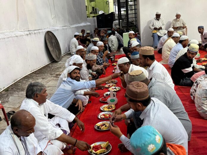 నేటి సాక్షి,నారాయణపేట మార్చి 19,( రిపోర్టర్ ఇమామ్ సాబ్ ) నారాయణపేట జిల్లా కేంద్రంలోని రంజాన్ సందర్భంగా గురువారం 20వ వార్డు లోని శతవాహన కాలనీలో మజీద్ లో తెలంగాణ ప్రభుత్వం మరియు వార్డు కౌన్సిలర్ శ్వేత వెంకటేష్ గౌడ్ ఆధ్వర్యంలో ముస్లిం సోదరులకు ఇఫత్తర్ విందు ఇవ్వడం జరిగింది ఈ యొక్క కార్యక్రమం లో మార్కెట్ కమిటీ ఛైర్మెన్ శివ రెడ్డి డైరెక్టర్ శరణప్ప తదితరులు పాల్గొన్నారు.
