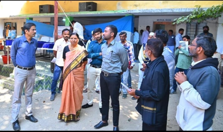 *నేటి సాక్షి – జగిత్యాల(పూరెళ్ల బాపు)…………………………,……….బుధవారం రోజున మేడిపల్లి, కథలాపూర్, మల్లాపూర్ మరియు ఇబ్రహీంపట్నం మండలాల్లో ఏర్పాటు చేసిన గ్రామ పంచాయతీ ఎన్నికల డిస్ట్రిబ్యూషన్ మరియు రిసెప్షన్ కేంద్రాలను పరిశీలించిన జిల్లా కలెక్టర్ బి. సత్య ప్రసాద్ పోలింగ్ కేంద్రాల్లో ఏర్పాట్లు, సిబ్బంది బాధ్యతల పంపిణీ, లాజిస్టిక్స్ ఎన్నికల మెటీరియల్ను జిల్లా కలెక్టర్ పరిశీలించారు.ఈ పరిశీలనలో అడిషనల్ కలెక్టర్ (రెవెన్యూ) బి.ఎస్. లత, అడిషనల్ కలెక్టర్ (లోకల్ బాడీస్) బి. రాజ గౌడ్, జెడ్పీ సీఈవో గౌతంరెడ్డి, కోరుట్ల–మెట్పల్లి ఆర్డీవోలు జివాకర్ రెడ్డి, శ్రీనివాస్, ట్రైనీ డిప్యూటీ కలెక్టర్ కన్నం హరిణి, ఎంపీడీవోలు, ఎమ్మార్వోలు మరియు సంబంధిత అధికారులు పాల్గొన్నారు.