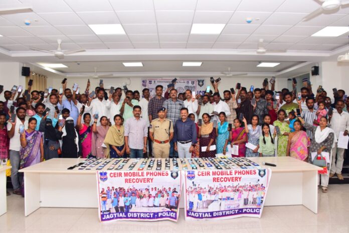 నేటి సాక్షి – జగిత్యాల టౌన్(పూరెళ్ల బాపు)……………………………….జిల్లా పోలీస్ ప్రధాన కార్యాలయంలో ఏర్పాటు చేసిన కార్యక్రమంలో మాట్లాడుతూ మొబైల్ ఫోన్ పోయిన,చోరికి గురైనా www.ceir.gov.in CEIR అప్లికేషన్ సద్వినియోగం చేసుకోవాలి అని ఎస్పీ అశోక్ కుమార్ అన్నారు.జగిత్యాల జిల్లా పరిధిలో పోగొట్టుకున్న, చోరికి గురైన 28 లక్షల విలువగల 136 మొబైల్ ఫోన్లను బాధితులకు అందజేశారు.సెల్ ఫోన్ పోయిన, చోరీకి గురైన ఆందోళన చెందవద్దని CEIR ద్వారా తిరిగి పొందవచ్చని జిల్లా ఎస్పీ అన్నారు.