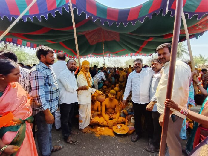 నేటి సాక్షి,నారాయణపేట, ఏప్రిల్ 22,(రిపోర్టర్ ఇమామ్ సాబ్ ), నారాయణపేట జిల్లాలోని యంనోనిపల్లి గ్రామంలో గోటూరు కులస్తుల ఆధ్వర్యం లో శ్రీశ్రీశ్రీ ఎల్లమ్మ దేవత బండారు కార్యక్రమం బుధవారం ఘనంగా నిర్వహించారు. ఇట్టి బండారులో 33 కుటుంబాలపై బండారు చల్లడం జరిగింది. ఇట్టి కార్యక్రమంలో గ్రామ మాజీ సర్పంచ్ సచిన్,మాజీ ఎంపిటిసి గౌని శ్రీనివాస్ కుర్వ గౌడ్ సిద్ధప్ప, పూజారి మల్లప్ప, కాశీనాథ్ రెడ్డి,కూర్మయ్య,అశోక్,శ్రీనివాస్, రాములు,సిద్ధప్ప, రాజు,బీరప్ప తదితరులు పాల్గొన్నారు.