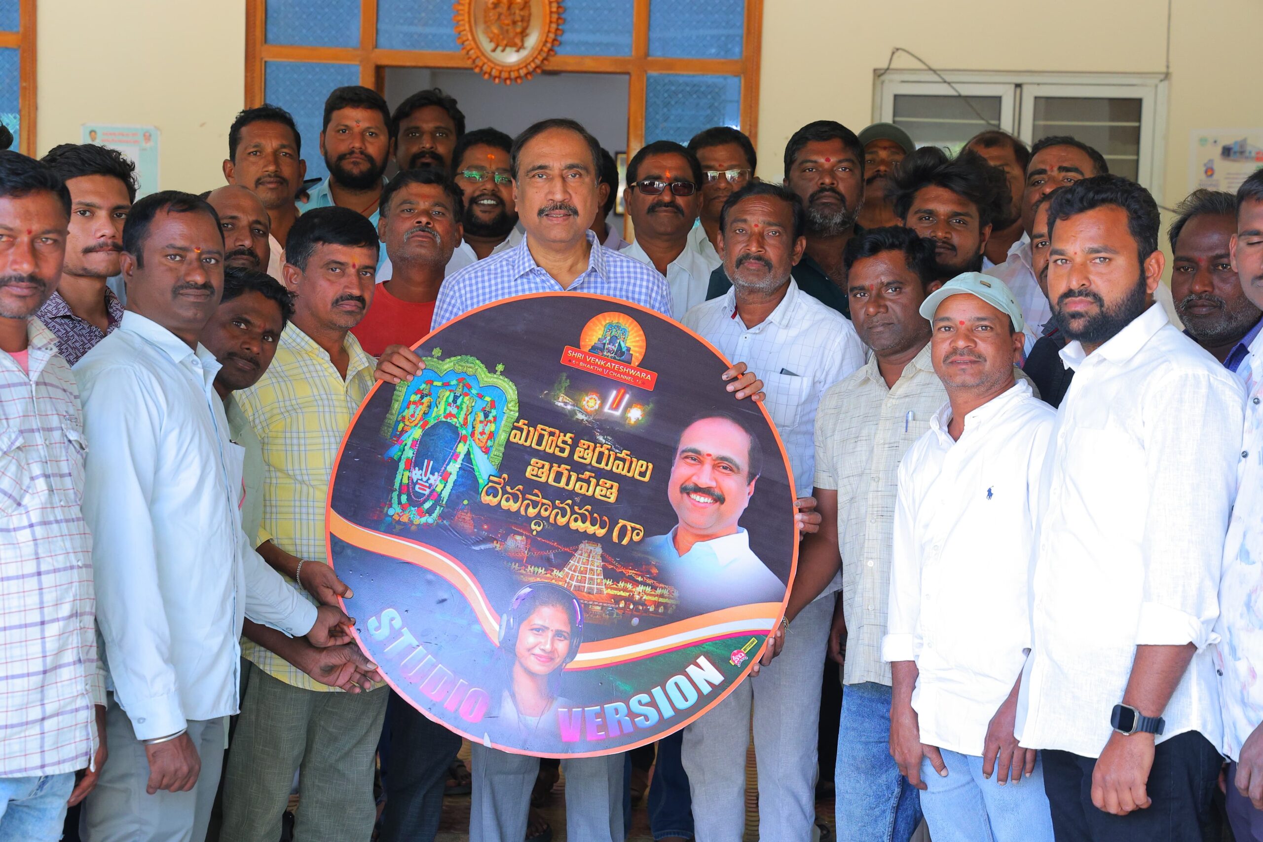 నేటి సాక్షి – జగిత్యాల టౌన్ (పూరెళ్ల బాపు)……………………………………జగిత్యాల అర్బన్ మండల అంబారిపేట శ్రీవెంకటేశ్వర స్వామి వారి మీద రూపొందించిన భక్తి పాట ను, శ్రీ వెంకటేశ్వర భక్తి యూట్యూబ్ చానల్ ను జగిత్యాల ఎమ్మెల్యే క్యాంప్ కార్యాలయంలో ఆవిష్కరించిన జగిత్యాల శాసనసభ్యులు డా సంజయ్ కుమార్.భక్తి పాట రూపొందించడానికి కృషి చేసిన,పాట రచన సిరికొండ రాజేశం,సింగర్ ప్రభ,సంగీతం సందీప్,సర్పంచ్,ఉప సర్పంచ్,వార్డు సభ్యులు, శ్రీ వెంకటేశ్వర ఆలయ కమిటీ సభ్యులు,గ్రామస్తులను ఎమ్మెల్యే డా.సంజయ్ కుమార్ అభినందించారు.
