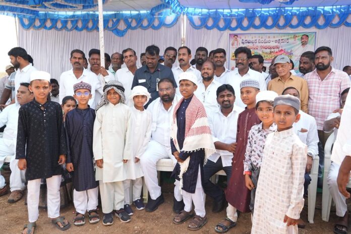 నేటి సాక్షి,నారాయణపేట, మార్చి 21 (రిపోర్టర్ ఇమామ్ సాబ్ ), రంజాన్ పండుగను పురస్కరించుకొని పేట జిల్లాలోని, మక్తల్ నియోజకవర్గం లోని వివిధ వివిధ మండలాల్లోని గ్రామాలకు చెందిన ముస్లిం సోదర సోదరీమణులకు శనివారం రాష్ట్ర క్రీడా, పాడి పరిశ్రమాభివృద్ధి, పశుసంవర్ధక, యువజనుల సర్వీసుల, మత్స్య శాఖ మంత్రి వాకిటి శ్రీహరి రంజాన్ శుభాకాంక్షలు తెలియజేశారు. మక్తల్ నియోజకవర్గం ఆత్మకూరు లో ఈద్గా వద్ద జరిగిన రంజాన్ వేడుకల్లో మంత్రి పాల్గొన్నారు. ప్రార్థనల అనంతరం ముస్లిం సోదరులను అలింగనం చేసుకొని వారికి హృదయ పూర్వక శుభాకాంక్షలు తెలియజేశారు. ఈ కార్యక్రమంలో కాంగ్రెస్ పార్టీ జిల్లా నాయకులు మండల నాయకులు కార్యకర్తలు తదితరులు పాల్గొన్నారు.