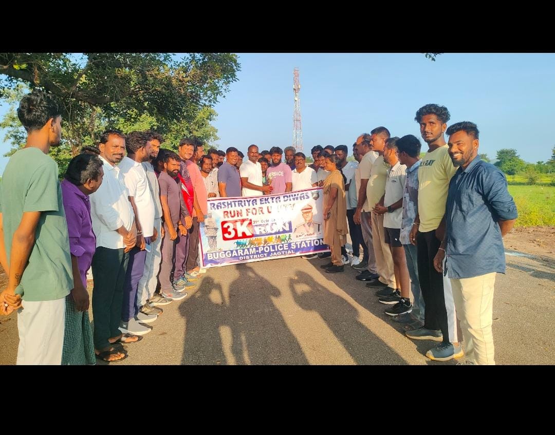 నేటి సాక్షి, జగిత్యాల ఎస్సైప్రతినిధి:* ( గుండ ప్రశాంత్ గౌడ్ )జగిత్యాల జిల్లా బుగ్గారం మండలంలో శ్రీ సర్దార్ వల్లభాయ్ పటేల్ జయంతి సందర్భంగా జాతీయ ఐక్యత దినోత్సవం పురస్కరించుకొని రన్ ఫర్ యూనిటీ ఐక్యత పరుగు కార్యక్రమం ఎస్సై సతీష్ ఆద్వర్యంలో ఘనంగా నిర్వహించబడింది. పోలీస్ సిబ్బంది, విద్యార్థులు క్రీడాకారులు ప్రజా ప్రతినిధులు మరియు యువత ఉత్సాహంగా పాల్గొన్నారు.మండల కేంద్రంలోని ఎడ్ల నాగలి కూడలి వద్ద ప్రారంభమైన ఈ ఐక్యత పరుగు తెలంగాణ గ్రామీణ బ్యాంకు, బుగ్గారం మండల కేంద్రం నుండి బస్ స్టాండ్ మీదుగా వూరి చివర ఉన్న మర్రి వరకు కొనసాగింది.సర్దార్ పటేల్ దేశాన్ని ఒకే తాటిపైకి తెచ్చిన ఐక్యత సూత్రధారి. ఆయన స్ఫూర్తితో మనమూ సమాజంలో ఐక్యత సామరస్యం నెలకొల్పాలి. ప్రతి పౌరుడు దేశ సమగ్రతను కాపాడే బాధ్యతను తీసుకోవాలి. రన్ ఫర్ యూనిటీ కార్యక్రమం ద్వారా దేశ భక్తిని, ఐక్యతను ప్రజల్లో యువతలో జాతీయతా భావం పెంపొందించడమే ఈ కార్యక్రమం ప్రధాన ఉద్దేశ్యం. శాంతిభద్రతల పరిరక్షణతో పాటు, జాతీయ స్ఫూర్తిని పెంపొందించడంలో పోలీస్ శాఖ ఎల్లప్పుడూ ముందుంటుంది. ఎస్ ఐ సతీష్ తెలిపారు