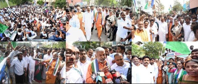 నేటి సాక్షి, అన్నమయ్య జిల్లా, శర్మ, డిసెంబర్ 15 ~అన్నమయ్య జిల్లా :-: మెడికల్ కాలేజీలో ప్రైవేటీకరణను వ్యతిరేకిస్తూ చేపట్టిన కోటి సంతకాల సేకరణ కార్యక్రమంలో భాగంగా తిరుపతి, చిత్తూరు జిల్లాల నుండి సేకరించిన సంతకాల పత్రాలను పెద్దిరెడ్డి రామచంద్రారెడ్డి, అర్ కే రోజా, భూమన కరుణాకర్ రెడ్డి, గోవిందప్ప శ్రీనివాసులు, విజయేందర్ రెడ్డి, భూమన అభినయ రెడ్డి తదితర ముఖ్య నేతలు ఏకమై పార్టీ జండాలను ప్రదర్శిస్తూ తిరుపతి నుండి తాడేపల్లి లోని పార్టీ కేంద్ర కార్యాలయానికి పంపారు. రానున్న సార్వత్రిక ఎన్నికల్లో చంద్రబాబు ఘోరంగా ఓడిపోతారని వైసీపీ రీజనల్ కో ఆర్డినేటర్, పార్టీ సీనియర్ నేత, పుంగునూరు శాసనసభ్యులు పెద్దిరెడ్డి రామచంద్రారెడ్డి అన్నారు. గత ప్రభుత్వం 17 మెడికల్ కాలేజీలను మంజూరు చేసి వాటిని పూర్తిచేయాలనుకోవడం ఒక చరిత్రనని ఆయన చెప్పారు. ప్రస్తుత ప్రభుత్వం దానిని ప్రైవేటీకరణ చేయాలని చూస్తోందని పెద్దిరెడ్డి ఆరోపించారు. ఈ సందర్భంగా పెద్దిరెడ్డి రామచంద్రారెడ్డి మీడియాతో మాట్లాడుతూ కూటమి నాయకులు చంద్రబాబు, పవన్ కల్యాణ్, నారా లోకేష్ విమానాల్లో తిరగడానికే సమయం సరిపోతుందని, ప్రభుత్వ ధనాన్ని వృథా చేస్తున్నారని మండిపడ్డారు. వైసీపీ హయాంలో మంజూరైన మెడికల్ కళాశాలను ప్రభుత్వ పరంగా నిర్మాణ పనులను పూర్తి చేయకుండా ప్రైవేట్పరం చేసి పేదలకు వైద్యం అందకుండా చేస్తున్నారని ఆగ్రహం వ్యక్తం చేశారు.~~~~~~~~~~~~~~~~~~