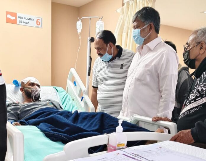 నేటి సాక్షి – జగిత్యాల టౌన్(పూరెళ్ల బాపు)………………………………….జగిత్యాల ఐ న్యూస్ ఛానల్ రిపోర్టర్ షఫీ అనారోగ్యంతో హైదరాబాద్ బంజారా హిల్స్ రెనోవో హాస్పిటల్ లో చికిత్స పొందుతుండగా హాస్పిటల్ లో వైద్యులను కలిసి షఫీ ఆరోగ్య పరిస్థితి తెలుసుకున్న కరీంనగర్ ఎమ్మెల్సీ ఎల్. రమణ,ఈ సందర్భంగా షఫీ వైద్య ఖర్చులకు తన వంతు ఆర్థిక సహాయం చేస్తామని తెలిపారు.
