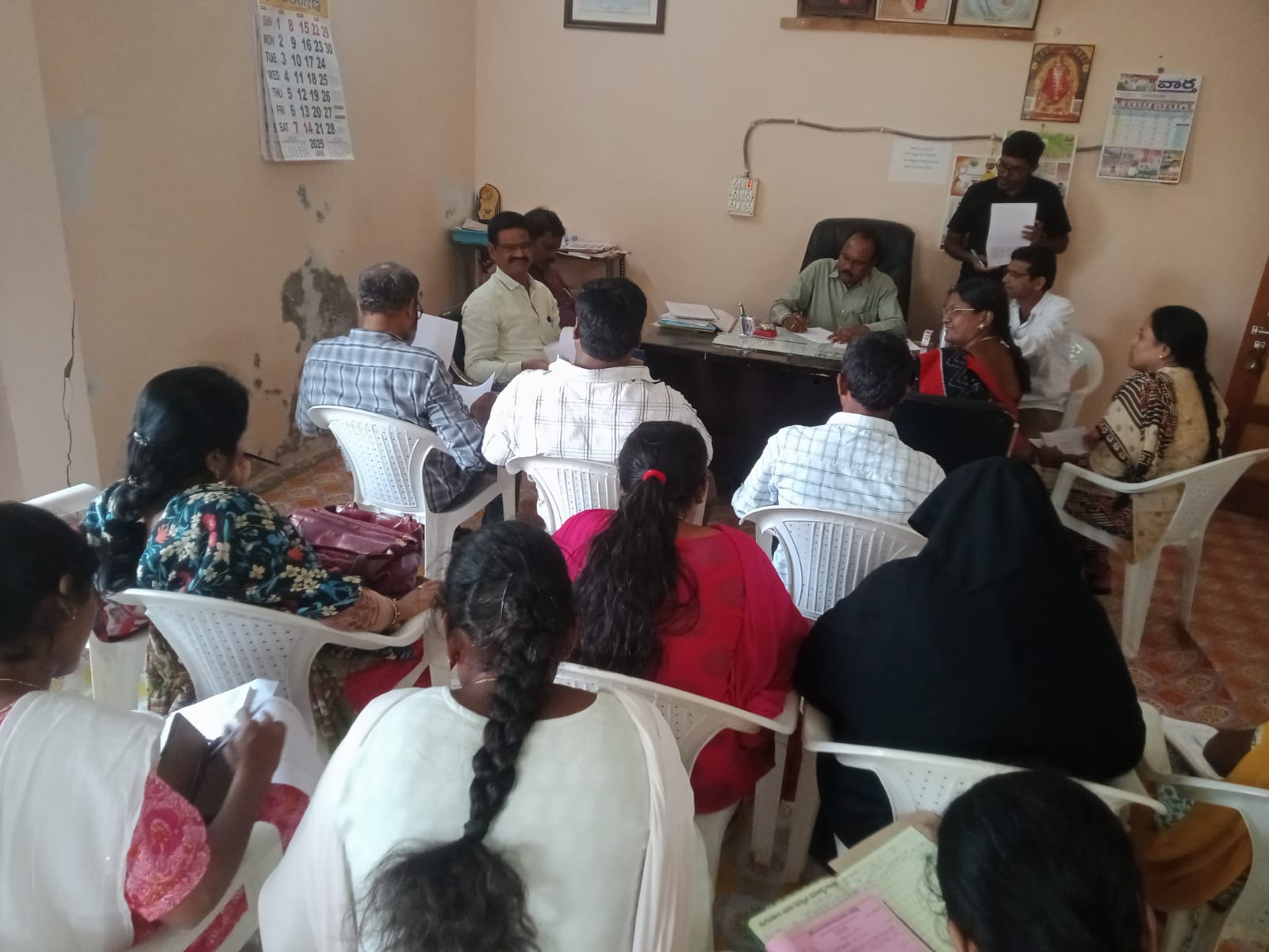 నేటి సాక్షి, నారాయణపేట, జూన్ 25, నారాయణపేట జిల్లాలోని ధన్వాడ మండల కేంద్రంలోని ఎంపీడీవో కార్యాలయంలో బుధవారం వివిధ గ్రామాల గ్రామపంచాయతీ కార్యదర్శుల సమావేశం నిర్వహించారు. ఈ సమావేశానికి ముఖ్య అతిథిగా నారాయణపేట జిల్లా డిఆర్డిఏ రామకృష్ణారెడ్డి హాజరయ్యారు. పంచాయతీ కార్యదర్శులను ఉద్దేశించి ఆయన మాట్లాడుతూ గ్రామీణ ప్రాంతాల్లో ఉండే ఉపాధి హామీ పనులకు సంబంధించి పలు సమస్యలు 15 దాకా రాసి ఇవ్వాలని ఆయన పంచాయతీ కార్యదర్శులను కోరారు. రెండు రోజుల్లోపు పూర్తిస్థాయిలో నివేదికలను అందజేయాలని పంచాయతీ కార్యదర్శులను ఆయన కోరారు. ఇట్టి విషయంపై పంచాయతీ కార్యదర్శులు నిర్లక్ష్యంగా వ్యవహరిస్తే చర్యలు తీసుకోవడం జరుగుతుందని ఆయన హెచ్చరించారు. ఈ సమావేశంలో ధన్వాడ మండలం ఎంపీడీవో సాయి ప్రకాష్ శెట్టి వివిధ శాఖల అధికారులు తదితరులు పాల్గొన్నారు.