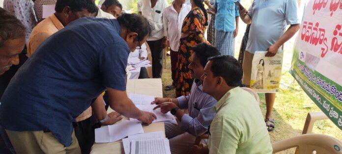 నేటి సాక్షి ఉమ్మడి వరంగల్ (సందెల రాజు)తెలంగాణ ప్రభుత్వం భూ సమస్యల పరిష్కారమే ద్యేయంగా నిర్వహిస్తున్న రెవిన్యూ సదస్సులను రైతులు సద్వినియోగం చేసుకోవాలని హన్మకొండ ఆర్ డి ఓ రమేష్ రాథోడ్, హాసన్ పర్తి తహశీల్దార్ చల్ల ప్రసాద్ కోరారు. శుక్రవారం హాసన్ పర్తి మండలం లోని పెగడపల్లి గ్రామం లో రెవెన్యూ సదస్సులు నిర్వహించడం జరిగింది. ఇందులో మొత్తం 362 అప్లికేషన్స్ వచ్చాయని, అందులో ఎక్కువగా సాధాబైనామా అప్లికేషన్స్ రావడం జరిగిందని తహసిల్దార్ చల్ల ప్రసాద్ తెలిపారు. ఈ కార్యక్రమంలో, మండల డిప్యూటీ తహసీల్దార్ రహీం పాషా, ఆర్ ఐ లు ఫాజిల్, రాజేంద్ర ప్రసాద్, జూ అసిస్టెంట్స్, రికార్డ్ అసిస్టెంట్స్ గౌస్, సతీష్, వి ఆర్ ఏ లు అనిల్, సస్య, సమ్మయ్య, పున్నం, రమేష్ తదితరులు పాల్గొన్నారు.