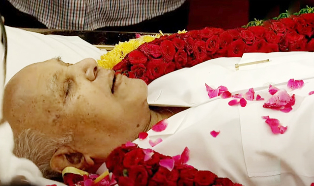 నేటి సాక్షి, హైదరాబాద్ : ఈనాడు గ్రూప్ సంస్థల అధినేత రామోజీరావు అంత్యక్రియలు ఆదివారం నిర్వహించనున్నారు. ఆయన మనవడు అమెరికా నుంచి రేపు వస్తున్నందున రేపు అంతిమసంస్కారాలు నిర్వహించాలని నిర్ణయించారు. అధికార లాంఛనాలతో రామోజీరావు అంత్యక్రియలు జరుగనున్నాయి. ప్రస్తుతం ఫిల్మీ సిటీలో ఆయన భౌతికకాయాన్ని సందర్శనార్థం ఉంచారు. ఆయన పార్థివదేహానికి పలువురు సినీ, రాజకీయ ప్రముఖులు నివాళులర్పించారు. పెద్ద సంఖ్యలో ఆయన భౌతిక కాయానికి శ్రద్ధాంజలి ఘటిస్తున్నారు.