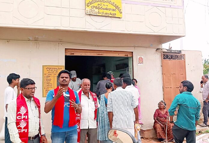 స్టాక్ పాయింట్ల నుంచి రేషన్ దుకాణాలకు సక్రమంగా రేషన్ బియ్యం సరఫరా చెయ్యడం లేదు…!!!ప్రజల ఇబ్బందులను వెంటనే అరికట్టాలి…!!!సిపిఐ వనపర్తి పట్టణ కార్యదర్శి జె. రమేష్…!!!నేటి సాక్షి ప్రతినిధి వనపర్తి జిల్లా :వనపర్తి లో రేషన్ బియ్యం పంపిణీలో అవకతవకలు జరుగుతున్నాయని వెంటనే అరికట్టాలని సిపిఐ వనపర్తి పట్టణ కార్యదర్శి జె. రమేష్, సిపిఐ జిల్లా కౌన్సిల్ సభ్యులు, ఏఐటీయూసీ జిల్లా ఉప ప్రధాన కార్యదర్శి గోపాలకృష్ణ డిమాండ్ చేశారు. వనపర్తి పట్టణ కమిటీ ఆధ్వర్యంలో పట్టణంలోని రేషన్ షాపులను సందర్శించారు. బండారు నగర్ రేషన్ షాప్ లో బియ్యం పంపిణీని పరిశీలించి, వినియోగదారులతో ఇబ్బందులను తెలుసుకున్నారు. అనంతరం మాట్లాడుతూ.. స్టాక్ పాయింట్ల నుంచి రేషన్ దుకాణాలకు సక్రమంగా బియ్యం సరఫరా చేయక పలు దుకాణాలు మూతపడ్డాయన్నారు. రేషన్ కార్డులు పట్టుకొని ప్రజలు బియ్యం కోసం కాళ్ళ అరిగేలా తిరుగుతున్నారన్నారు. స్టాక్ ఉన్నచోట గంటలతరబడి క్యూలో నిలబడి చివరికి స్టాక్ లేకపోవడంతో బాధతో ఇంటికి వెళ్తున్నారన్నారు. రేషన్ షాప్ లో క్యూలో చివర ఉన్నవారికి ఈరోజు రేషన్ దొరకలేదన్నారు స్టాక్ వస్తే మళ్లీ పంపిణీ చేస్తామని డీలరు చెప్పారన్నారు. జూన్ జూలై ఆగస్టు మూడు నెలల స్టాకు ఒకేసారి పంపిణీతో ఒక్కొక్కరికి ఇచ్చేందుకు 15 నుంచి 20 నిమిషాలు పడుతోందన్నారు. తగినంత స్టాక్ రేషన్ షాప్ లో ఉండేలా చర్యలు తీసుకోవాలన్నారు. అంతేగాక బియ్యం పంపిణీలో స్టాక్ పాయింట్ నుంచి డీలర్ వరకు అక్రమాలకు పాల్పడుతున్నారన్నారు. 50 కిలోల బియ్యం ఖాళీ బస్తా బరువు 568 గ్రాములు ఉంటుందని అధికారులు చెబుతున్నారన్నారు. ఖాళీ బస్తా బరువు పోను 50 కిలోల నెట్ బియ్యం సంచిలో ఉండాలన్నారు. కానీ స్టాక్ పాయింట్ల నుంచి సరఫరా చేస్తున్న కొన్ని బియ్యం బస్తాల్లో 44 నుంచి 48 కిలోల బియ్యమే ఉంటున్నాయని డీలర్లు చెబుతున్నారన్నారు. పంపిణీలో ఆ తరుగును భర్తీ చేసుకునేందుకు డీలర్లు ప్రతి కార్డు హోల్డర్ కు అరకిలో ఆ పైగా బియ్యం తక్కువ ఇస్తున్నారన్నారు. చివరకు వినియోగదారుడే నష్టపోతున్నారన్నారు. రేషన్ షాప్ లలో కొందరికి ఈరోజు నాణ్యతలేని బియ్యం ఇచ్చారన్నారు. ఈ అవకతవకలపై జిల్లా కలెక్టర్ వెంటనే చర్య తీసుకోవాలన్నారు. ఈ నెల వరకు జారీ అయిన అన్ని కొత్త రేషన్ కార్డులకు కూడా బియ్యం ఇవ్వాలన్నారు. రేషన్ షాపుల్లో 18 రకాల నిత్యవసర సరుకులను పంపిణీ చేయాలని డిమాండ్ చేశారు. రేషన్ పంపిణీలో అవకతవకలు అరికట్టి, పంపిణీ ఇబ్బందులు తీర్చకుంటే సిపిఐ ఆధ్వర్యంలో ఆందోళన చేస్తామని హెచ్చరించారు. పట్టణ సహాయ కార్యదర్శి ఎర్రకురుమన్న తదితరులు పాల్గొన్నారు.