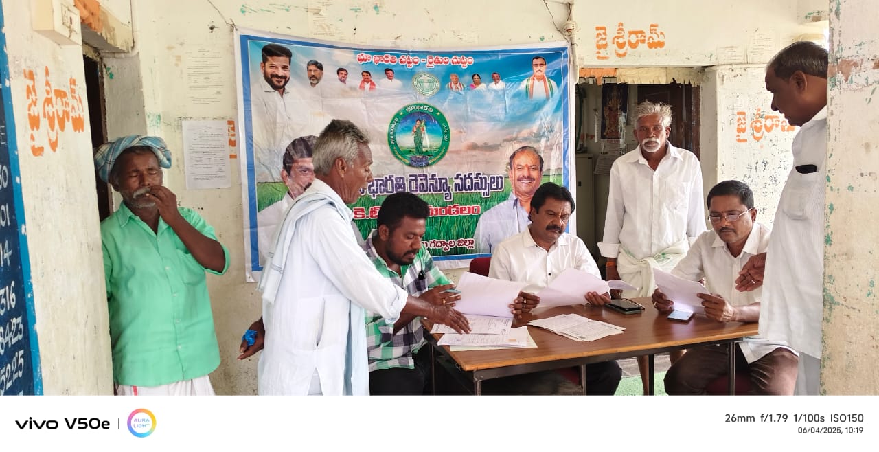 నేటి సాక్షి ప్రతినిధి గద్వాల్ : ( రమేష్ ) : కేటి దొడ్డి మండల పరిధిలోని ఇరికిచేడు గ్రామంలో బుధవారం తహసిల్దార్ హరికృష్ణ ఆధ్వర్యంలో బుధవారం ఇరికిచేడు గ్రామంలో పంచాయతీ ఆఫీస్ దగ్గర భూ భారతి రెవెన్యూ సదస్సు నిర్వహించారు ఈ సందర్భంగా గ్రామం నుంచి 16 దరఖాస్తులు వచ్చాయని తహసీల్దార్ హరికృష్ణ అన్నారు అదేవిధంగా రైతులకు ఏ విధమైన భూ సమస్య ఉన్నా పరిష్కరించేందుకు కృషి చేస్తాం అని అన్నారు రైతులకు ఎలాంటి భూ సమస్య ఉన్న మా దృష్టికి తీసుకుని రావాలి అని రైతులకు సూచన చేశారు