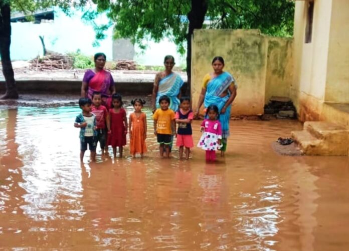 లింగాల లో అంగన్ వాడి కేంద్రం చుట్టూ వర్షపు నీరు వర్షం నీటిలో ఇబ్బంది పడుతున్న చిన్నారులు పాములపాడు అక్టోబర్ 31..