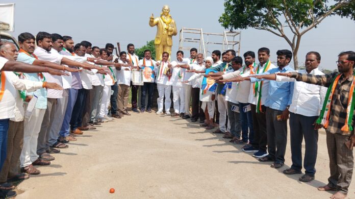 నేటి సాక్షి ప్రతినిధి,మహేశ్వరం(చిక్కిరి.శ్రీకాంత్) మహేశ్వరం నియోజకవర్గం కాంగ్రెస్ ఇన్ఛార్జి కిచ్చెన్నగారి లక్ష్మారెడ్డి – సూచన మేరకు *జైబాపు జైభీమ్ జైసంవిధాన్* కార్యక్రమాన్ని నిర్విరామంగా కాంగ్రెస్ శ్రేణులు నిర్వహిస్తున్నాయి.ఈరోజు మహేశ్వరం, కందుకూరు, తుక్కుగూడ మున్సిపాలిటీలో వాడవాడకు పాదయాత్ర చేసి జైభీమ్ అంటూ నినాదాలు చేశారు.కేంద్ర ప్రభుత్వం భారత రాజ్యాంగంపై చేస్తున్న దాడిని వివరిస్తూ కరపత్రాలు పంపిణీ చేశారు.ఈకార్యక్రమంలో మహేశ్వరం నియోజకవర్గం కాంగ్రెస్ నాయకులు, మహిళా నాయకురాళ్లు పాల్గొన్నారు.