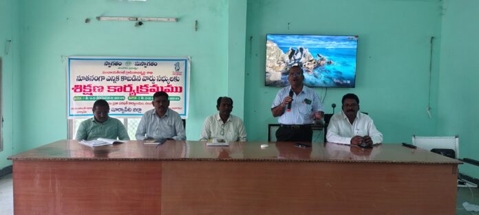 నేటి సాక్షి చిలుకూరు.* చిలుకూరు మండల పరిషత్ కార్యాలయంలో వార్డు సభ్యులకు శిక్షణ ఇస్తున్న ఎంపీ ఓ చిలుకూరు వార్డు సభ్యులు గ్రామ అభివృద్ధిలో కీలకపాత్ర పోషించాలని ఎంపీ ఓ ముక్కపాటి నరసింహా రావు అన్నారు చిలుకూరు మండల పరిషత్ కార్యాలయంలో వార్డు సభ్యులకు నిర్వహించిన శిక్షణ కార్యక్రమంలో మాట్లాడారు. వార్డు సభ్యులు తమ విధులను బాధ్యతలన తెలుసుకొని అందుకు అనుగుణంగా పనిచేయాలని సూచించారు. రాజ్యాంగం కల్పించిన తమ హక్కులను వినియోగించుకోవాలని అన్నారు మండలంలోని వార్డు సభ్యులకు రెండు విడుదలుగా శిక్షణ ఇస్తున్నట్లు గా తెలిపారు 20వ తేదీ వరకు మొదటి విడత 23 నుండి 27వ తేదీ వరకు రెండో విడత వార్డు సభ్యులకు శిక్షణ ఇస్తున్నట్లుగా తెలిపారు ఈ కార్యక్రమంలో ట్రైనర్ వెంకటనారాయణ అక్షయ్ తేజ మల్లారెడ్డి నాగరాజు తదితరులు పాల్గొన్నారు ….