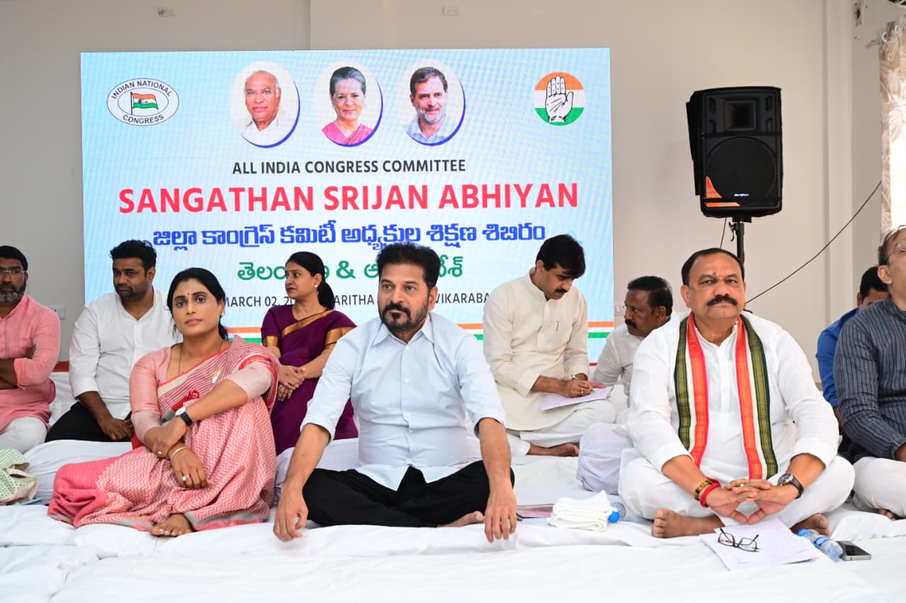 సాక్షి వికారాబాద్ : “సంఘటన సృజన్ అభియాన్” కార్యక్రమం భాగంగా ఆంధ్రప్రదేశ్, తెలంగాణ రాష్ట్రాల జిల్లా కాంగ్రెస్ కమిటీ (డిసిసి) అధ్యక్షుల కోసం నిర్వహిస్తున్న పది రోజుల ప్రత్యేక శిక్షణా శిబిరం ఘనంగా ప్రారంభమైంది.ఈ కార్యక్రమానికి ముఖ్య అతిథిగా ముఖ్యమంత్రి రేవంత్ రెడ్డి హాజరయ్యారు. టీపీసీసీ అధ్యక్షులు, ఎమ్మెల్సీ మహేష్ కుమార్ గౌడ్ , ఏపీసీసీ అధ్యక్షురాలు వైఎస్ షర్మిల ,సీడబ్ల్యూసీ సభ్యులు చల్లా వంశీ చందర్ రెడ్డి , ఏఐసీసీ ఇంచార్జీ కార్యదర్శి సచిన్ సావంత్ , మంత్రులు శ్రీధర్ బాబు ,పొన్నం ప్రభాకర్ ,పొంగులేటి శ్రీనివాస్ రెడ్డి గ, ప్రభుత్వ సలహాదారు వేం నరేందర్ రెడ్డి,ఎమ్మెల్యే రామ్మోహన్ రెడ్డి ,తదితరులు పాల్గొన్నారు.ఈ సందర్భంగా సీఎం రేవంత్ రెడ్డి మాట్లాడుతూ, పార్టీ బలోపేతానికి కేడర్ శిక్షణ అత్యంత అవసరమని పేర్కొన్నారు. జిల్లా అధ్యక్షులు పార్టీ సిద్ధాంతాలను గ్రామస్థాయికి తీసుకెళ్లే వారధులని, ప్రజా సమస్యల పరిష్కారంలో ముందుండాలని సూచించారు. ప్రభుత్వ సంక్షేమ పథకాలను సమర్థంగా ప్రజలకు చేరవేయడంలో కీలక పాత్ర పోషించాలని పిలుపునిచ్చారు.టీపీసీసీ అధ్యక్షులు మహేష్ కుమార్ గౌడ్ మాట్లాడుతూ, “సంఘటన సృజన్” కార్యక్రమం కాంగ్రెస్ పార్టీకి నూతన దిశానిర్దేశం చేస్తుందని తెలిపారు. సమన్వయం, క్రమశిక్షణ, కార్యాచరణతో ముందుకు సాగితేనే పార్టీ మరింత బలపడుతుందని అన్నారు.ఏపీసీసీ అధ్యక్షురాలు వైఎస్ షర్మిల మాట్లాడుతూ, రెండు రాష్ట్రాల కాంగ్రెస్ నేతలు పరస్పర అనుభవాలను పంచుకుంటూ బలమైన సంస్థాగత నిర్మాణం దిశగా కృషి చేయాలని సూచించారు.సంఘటన సృజన్ ప్రోగ్రామ్ చైర్మన్ ఆధ్వర్యంలో, ఆర్గనైజింగ్ సెక్రటరీ వంశీ చందర్ రెడ్డి, చైర్మన్ ఎమ్మెల్యే రామ్మోహన్ రెడ్డి నేతృత్వంలో ఈ శిక్షణా శిబిరం నిర్వహించబడుతోంది. పది రోజుల పాటు జరిగే ఈ శిబిరంలో నాయకత్వ నైపుణ్యాలు, ప్రజా సమస్యల పరిష్కార విధానాలు, ఎన్నికల వ్యూహాలు, మీడియా నిర్వహణ తదితర అంశాలపై సమగ్ర శిక్షణ అందించనున్నారు.ఈ శిబిరం ద్వారా ఏపీ, తెలంగాణ కాంగ్రెస్ సంస్థాగతంగా మరింత పటిష్టమవుతుందని నాయకులు ఆశాభావం వ్యక్తం చేశారు.