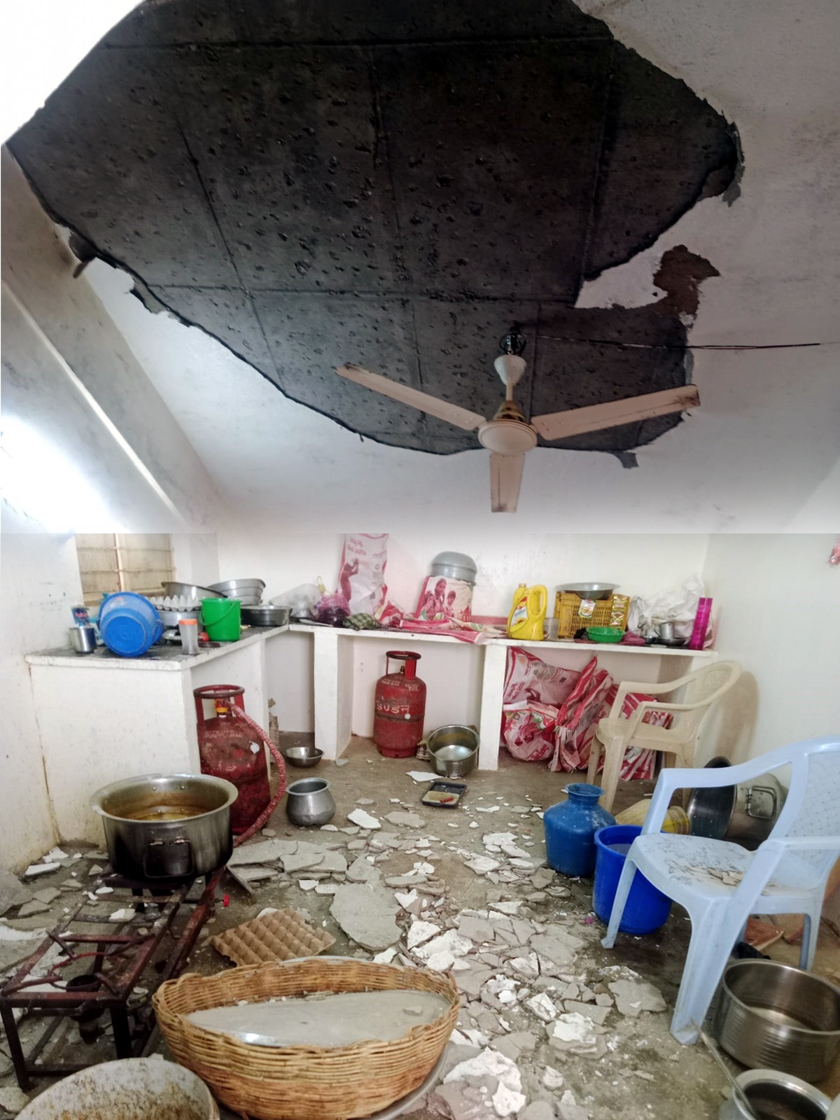 7 నేటి సాక్షి న్యూస్ చౌడేపల్లి : మండలం లోని కాగతి గ్రామ పంచాయతీ, మర్రిమాకులపల్లి ప్రాథమికళపాఠశాలలో సంఘటన చోటుచేసుకున్నది.నాడు -నేడులో నిర్మించిన వంటగదిలో పైపెచ్చులు ఊడి పడ్డాయి.వంట గదిలో వంట మనిషి వంట చేస్తుండగా సీలింగ్ పెచ్చులు ఊడిపడటం తో ఆవిడ బయటకు పరుగులు తీసింది.వండిన అన్నం పై, వండుతున్న సాంబాలో సీలింగ్ పై పెచ్చులు ఊడి పడ్డాయి.ఎటువంటి ప్రాణాపాయం లేదని.ఆ సమయం లో విద్యార్థులు తమ తరగతి గదులలో ఉడటంతో ప్రమాదం తప్పిందని, ఈ విషయం మండల విద్యశాఖ అధికారుల దృష్టికి తీసుకొని వెళ్ళడం జరిగానదని, త్వరలో పూర్తిగా రిపేరు చేయిస్తామని ప్రధానోపాధ్యాయులు మురళీ మోహన్ తెలియజేశారు..