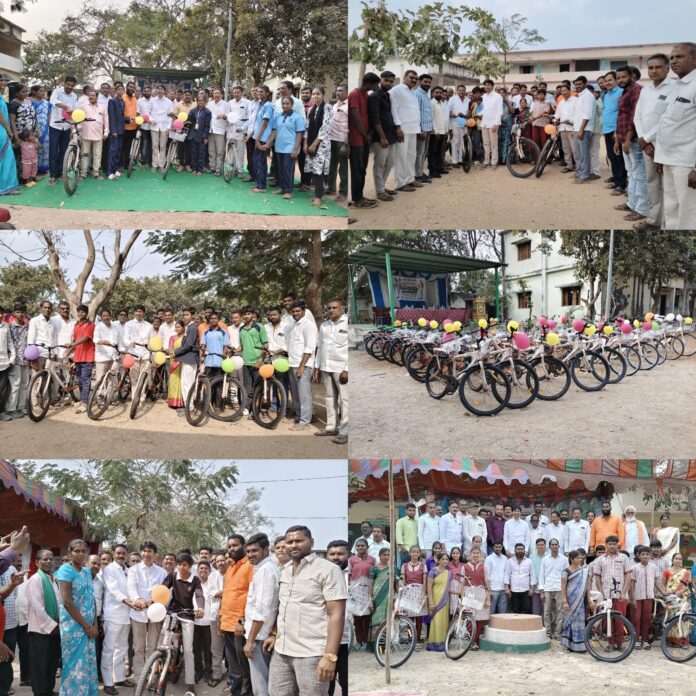 నేటి సాక్షి – కథలాపూర్*( రాధారపు నర్సయ్య )కరీంనగర్ పార్లమెంటరీ నియోజకవర్గంలో విద్యార్థుల విద్యాభివృద్ధికి ప్రోత్సాహం అందించాలనే సంకల్పంతో కేంద్ర మంత్రి బండి సంజయ్ కుమార్ ప్రారంభించిన “మోడీ గిఫ్ట్” కార్యక్రమం కథలాపూర్ మండలంలో విజయవంతంగా నిర్వహించబడింది. గ్రామీణ ప్రాంతాల్లోని విద్యార్థులు చదువులో వెనుకబడకుండా ముందుకు సాగాలన్న లక్ష్యంతో ఈ కార్యక్రమాన్ని అమలు చేస్తున్నట్లు నాయకులు తెలిపారు.*ఆరు గ్రామాల 10వ తరగతి విద్యార్థులకు లబ్ధి*ఈ కార్యక్రమంలో భాగంగా తక్కల్లపల్లి, బొమ్మెన, పోతారం, అంబారిపేట, తండ్రియాల, గంభీర్పూర్ గ్రామాలకు చెందిన 10వ తరగతి విద్యార్థులకు సైకిళ్లను పంపిణీ చేశారు. ముఖ్య అతిథిగా హాజరైన వేములవాడ నియోజకవర్గ ఇంచార్జి డాక్టర్ చెన్నమనేని వికాస్ విద్యార్థులకు స్వయంగా సైకిళ్లు అందజేశారు.*గ్రామీణ విద్యార్థుల ఇబ్బందులను గుర్తించిన కార్యక్రమం*ఈ సందర్భంగా డాక్టర్ వికాస్.. మాట్లాడుతూ, కరీంనగర్ పార్లమెంట్ పరిధిలోని విద్యార్థులు చదువులో వెనుకబడకుండా ముందుకు సాగాలన్నదే కేంద్ర మంత్రి బండి సంజయ్ ప్రధాన లక్ష్యమని తెలిపారు. గ్రామీణ ప్రాంతాల్లోని విద్యార్థులు పాఠశాలలకు వెళ్లే సమయంలో ఎదుర్కొంటున్న రవాణా ఇబ్బందులను దృష్టిలో పెట్టుకొని ఈ సైకిళ్ల పంపిణీ కార్యక్రమాన్ని ప్రత్యేకంగా అమలు చేస్తున్నారని చెప్పారు.*ఎన్నికలకే కాదు.. ఎప్పుడూ ప్రజలతోనే నాయకత్వం*ఎన్నికల సమయంలో మాత్రమే కాదు, ప్రజల అవసరాలను ఎప్పటికప్పుడు గుర్తించి స్పందించే నాయకత్వం బండి సంజయ్ దని డాక్టర్ వికాస్ ప్రశంసించారు. విద్యే అభివృద్ధికి మూలమని నమ్మే భారతీయ జనతా పార్టీ, కరీంనగర్ పార్లమెంటరీ నియోజకవర్గాన్ని ఒక విద్యా కేంద్రంగా తీర్చిదిద్దే దిశగా నిరంతరం కృషి చేస్తోందని తెలిపారు.*విద్యతో పాటు నైపుణ్యాల పెంపుపై దృష్టి*విద్యార్థులు కష్టపడి చదివి ఉన్నత స్థాయికి చేరుకొని తమ కుటుంబాలకు, సమాజానికి గర్వకారణంగా నిలవాలని ఆయన ఆకాంక్షించారు. మద్యం, మత్తు పదార్థాలకు బానిసవకుండా క్రమశిక్షణతో చదువుకోవాలని సూచించారు. విద్యతో పాటు నైపుణ్యాలను కూడా పెంపొందించుకుంటే జీవితంలో మరింత ఉన్నత స్థానాలకు చేరుకోవచ్చని హితవు పలికారు.ఈ కార్యక్రమంలోమండల అధ్యక్షుడు మల్యాల మారుతి,జిల్లా ఉపాధ్యక్షులు రాచమడుగు వెంకటేశ్వరరావు,కిసాన్ మోర్చా జిల్లా అధ్యక్షుడు గోపాల్ రెడ్డి,మాజీ మండల అధ్యక్షుడు కంటే సత్యనారాయణ,బద్రి సత్యం, వినోద్ రెడ్డి, గాంధారి శ్రీనివాస్, రాచమడుగు శ్రీనివాసరావు, ధర్మపురి జలంధర్, గడిల గంగాప్రసాద్,వివిధ గ్రామాల సర్పంచులు, ఉపసర్పంచులు, పాఠశాల ప్రధానోపాధ్యాయులు, తల్లిదండ్రులు, గ్రామ ప్రజలు పెద్ద సంఖ్యలో పాల్గొన్నారు._______