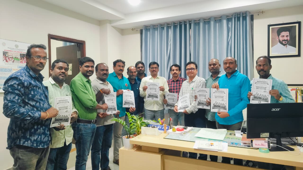 నేటి సాక్షి – జగిత్యాల టౌన్ (పూరెళ్ల బాపు)……………………………….,……విద్యార్థుల భవిష్యత్తుకు తెలంగాణ మ్యాతమెటీక్స్ ఫోరం జగిత్యాల జిల్లా రిసోర్స్ టీమ్ రూపొందించిన మెటీరియల్ ఎంతగానో ఉపయోగపడుతుందని జగిత్యాల జిల్లా విద్యాశాఖ అధికారి కే. రాము అన్నారు.జగిత్యాల జిల్లా విద్యాశాఖ ఆధ్వర్యంలో ఎస్సేసి 2025–26 పరీక్షల్లో వంద శాతం ఉత్తీర్ణత సాధించాలనే లక్ష్యంతో తెలంగాణ మ్యాథమెటిక్స్ ఫోరం (TMF) జగిత్యాల జిల్లా రిసోర్స్ టీం రూపొందించిన మ్యాతమేటిక్స్ టీచర్స్ సపోర్ట్ గ్రూప్ స్టూడెంట్ మెటీరియల్ ను శనివారం డీ ఈ ఓఆవిష్కరించారు.ఈ కార్యక్రమానికి ముఖ్య జిల్లా విద్యాశాఖ అధికారి కె. రాము , ఏ ఏం ఓ చంద్రశేఖర్ రెడ్డి గారు, డీసీఈబీ కార్యదర్శి మురళీమనోహర చారి, డిసిఈబీ అసిస్టెంట్ సెక్రటరీ హాజరయ్యా రు. *ఈ సందర్భంగా డిఈఓ రాము మాట్లాడుతూ*టీచర్ సపోర్ట్ గ్రూప్ విద్యార్థులు గణితంలో భయాన్ని తొలగించి ధైర్యంగా పరీక్షలు రాయడానికి ఈ మెటీరియల్ దోహదపడుతుందని ఆయన పేర్కొన్నారు.ఈ అధ్యయన సామగ్రి ఉపాధ్యాయులకు మార్గదర్శకంగా, విద్యార్థులకు ఆత్మవిశ్వాసాన్ని పెంచే విధంగా రూపొందించబడిందన్నారు.ఈ కార్యక్రమంలో టీ ఎం ఎఫ్ జగిత్యాల జిల్లా అధ్యక్షులు వి. శ్రీకాంత్ , ప్రధాన కార్యదర్శి బస రాజగోపాల్ , ఆర్థిక కార్యదర్శి ఎం. లక్ష్మీకాంత్ , వి వి.వెంకటస్వామి , అశోక్ ఎర్రబెల్లి సభ్యులు టి. శ్రీనివాస్, ప్రవీణ్, వేణు తదితరులు పాల్గొన్నారు.జిల్లాలోని అన్ని పాఠశాలల్లో ఈ మెటీరియల్ను సమర్థవంతంగా అమలు చేసి వంద శాతం ఫలితాలు సాధించాలని వక్తలు పిలుపునిచ్చారు.జగిత్యాల జిల్లాలో గణిత ఫలితాల మెరుగుదలకు ఒక మైలురాయిగా నిలుస్తుందని పలువురు అభిప్రాయపడ్డారు.