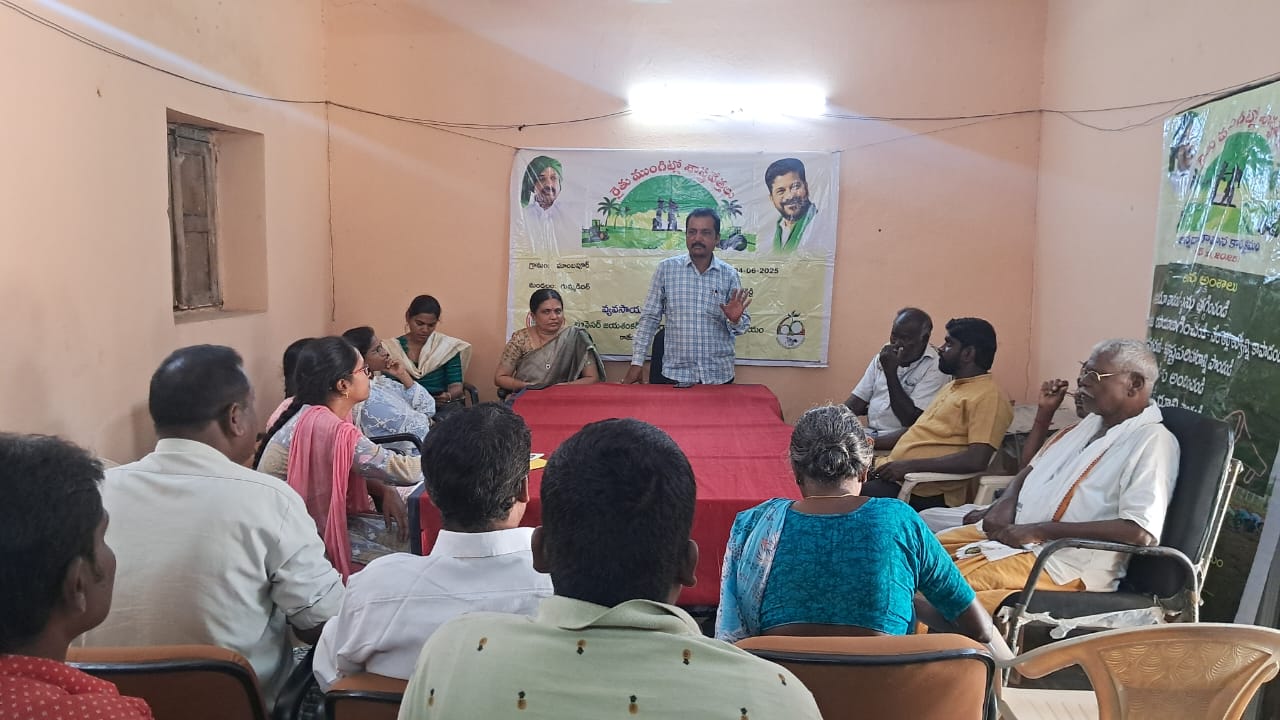 ప్రొఫెసర్ జయశంకర్ వ్యవసాయ విద్యాలయ శాస్త్రవేత్తలు – గుమ్మడిదల ,జూన్ 4 నేటి సాక్షి న్యూస్ ;వ్యవసాయ సాగు విత్తనాలను ప్రభుత్వ రంగ సంస్థల నుండి కొనుగోలు చేయాలని ప్రొఫెసర్ జయశంకర్ వ్యవసాయ విశ్వవిద్యాలయం శాస్త్రవేత్తలు తెలిపారు . ప్రొఫెసర్ జయశంకర్ తెలంగాణ రాష్ట్ర వ్యవసాయ విశ్వవిద్యాలయం చేపట్టిన ‘రైతు ముంగిట్లో శాస్త్రవేత్తలు’ కార్యక్రమం బుధవారం గుమ్మడిదల మండలం రాంరెడ్డి బావి గ్రామంలో నిర్వహించారు. ఈ సందర్భంగా డాక్టర్ బి హేమలత మాట్లాడుతూ, రైతులు విత్తనాలు, పురుగుమందులు కొనుగోలు చేసినప్పుడు తీసుకునె బిల్లులు సీజన్ ముగిసే వరకు భద్రంగా ఉంచుకోవాలని సూచించారు. సాగు వ్యయాన్ని తగ్గించుకునే మార్గాలను రైతులకు వివరించారు.విత్తనాలను ప్రభుత్వ రంగ సంస్థల ద్వారా గాని, విశ్వవిద్యాలయం ద్వారా గాని కొనుగోలు చేయాలని తెలిపారు. కొత్త రకపు వరి రకాలపై రైతులకు అవగాహన కల్పించారు. మొక్కజొన్న పంటలో పాల్ ఆర్మీ వార్మ్ నివారణ ,అడవి పందుల నిర్వహణ చర్యల గురించి రైతులకు శాస్త్రీయంగా వివరించారు. విత్తన శుద్ధికరణ లో తీసుకోవలసిన జాగ్రత్తలను వివరించారు. రైతులు సమతూలిత ఆహారం తీసుకోవాలని వారు కోరారు. రోజువారి ఆహారంలో ప్రోటీన్లు, ఫైబర్ ప్రాముఖ్యతను వివరిస్తూ, ఆరోగ్యమే మహాభాగ్యమని వారన్నారు. ఈ కార్యక్రమంలో గ్రామ వ్యవసాయ విస్తరణ అధికారి ప్రణవి, యూనివర్సిటీ పీహెచ్డీ విద్యార్థి హీమా కుమార్, డాక్టర్ సారిక, సుస్మిత ,గ్రామ రైతులు, తదితరులు పాల్గొన్నారు.